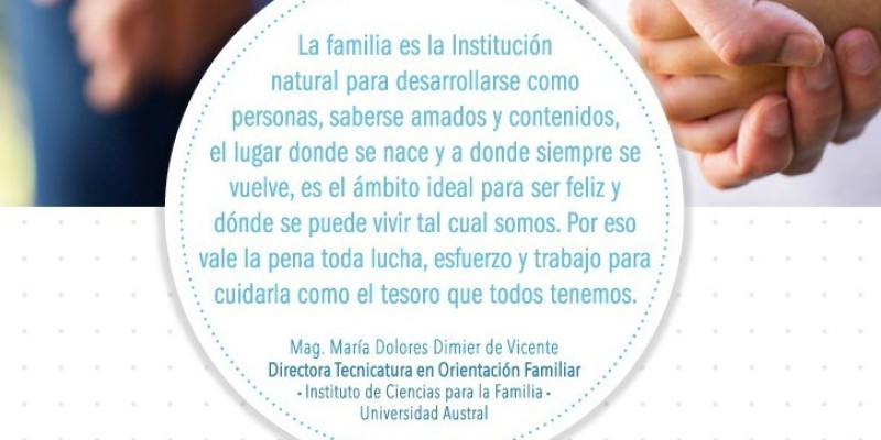 Una sociedad no se comprende a espaldas de la familia, pero tampoco se comprende una familia sin una sociedad en la cual insertarse. Familia y sociedad se implican y retroalimentan mutuamente. Por lo tanto, si buscamos la mejora de la sociedad, el protagonismo familiar es fundamental. Desafío que compete especialmente a los Técnicos en Orientación Familiar, carrera que se dicta en el Instituto de Ciencias para la Familia de la Universidad Austral y que ya cuenta con la 7° promoción, preparando profesionales especialistas en temas de familia, insertos laboralmente en diferentes ámbitos educativos, sociales, de la salud, judiciales, etc.