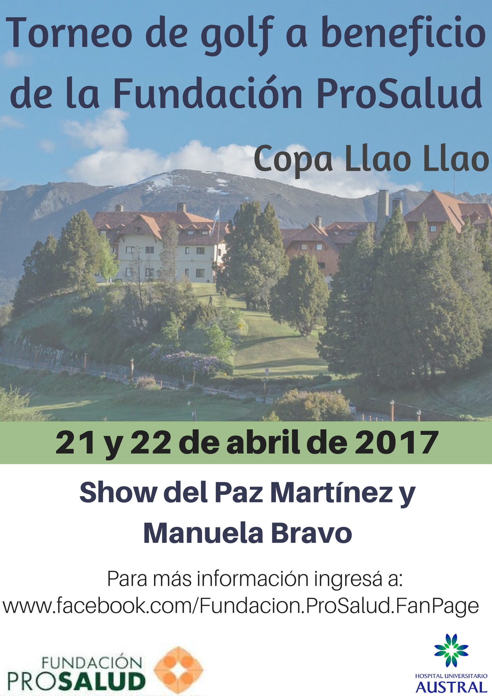 Con motivo de la recaudación de fondos para la Fundación del Hospital Austral, el 21 y 22 de abril se llevará a cabo un torneo de golf en el Hotel Llao Llao, ubicado en la provincia de Río Negro. Para obtener más información sobre este evento, se puede ingresar a la página: www.facebook.com/Fundacion.ProSalud.FanPage.