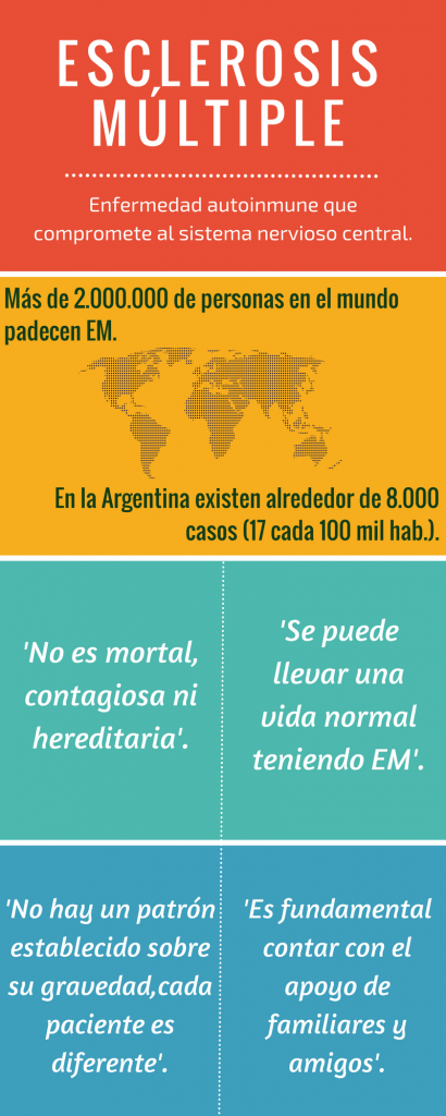 La Dra. Fátima Pagani Cassará, neuróloga del Hospital, aseguró que “se trata de una enfermedad autoinmune que compromete el sistema nervioso central. Como ocurre en todas las enfermedades autoinmunes, nuestro sistema inmunológico, que es el encargado de defendernos de agentes externos como virus y bacterias, deja de reconocer como propio un tejido o sustancia del cuerpo. En el caso de la EM esta sustancia es la mielina, que se encuentra en el cerebro, la medula espinal y el nervio óptico. En presencia de la enfermedad lo que ocurre es que el sistema inmune ataca la mielina produciéndose lesiones o cicatrices (esclerosis) que se manifiestan con diversos síntomas”, explicó la especialista.