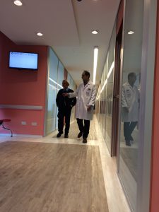 Una vez en la sala de espera, el paciente espera cómodamente a ser llamado a través de una pantalla que se encuentra en conexión con el sistema de registro interno, call center y médicos.