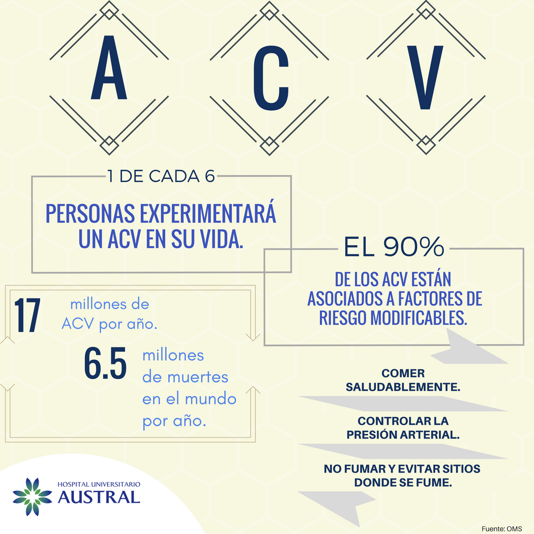 El domingo 29 de octubre se conmemora el Día Mundial y Nacional del Ataque Cerebral o ACV. «Una de cada seis personas experimentará un ACV en su vida», aseguro la Dra. Victoria Marquevich, especialista del Hospital Austral.