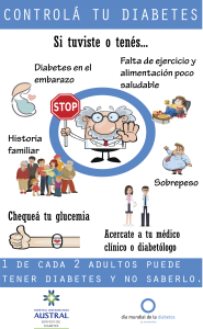 Es por ello que en el hall central del Hospital Universitario Austral, el Servicio de Diabetes realizará controles gratuitos de glucemia a toda persona interesada. Los controles están abierto a la comunidad. El propósito de la actividad es la” Detección Temprana de la Enfermedad”. Esta grave afección se haya en aumento y seguirá esta tendencia a no ser que se emprendan acciones para prevenirlo.