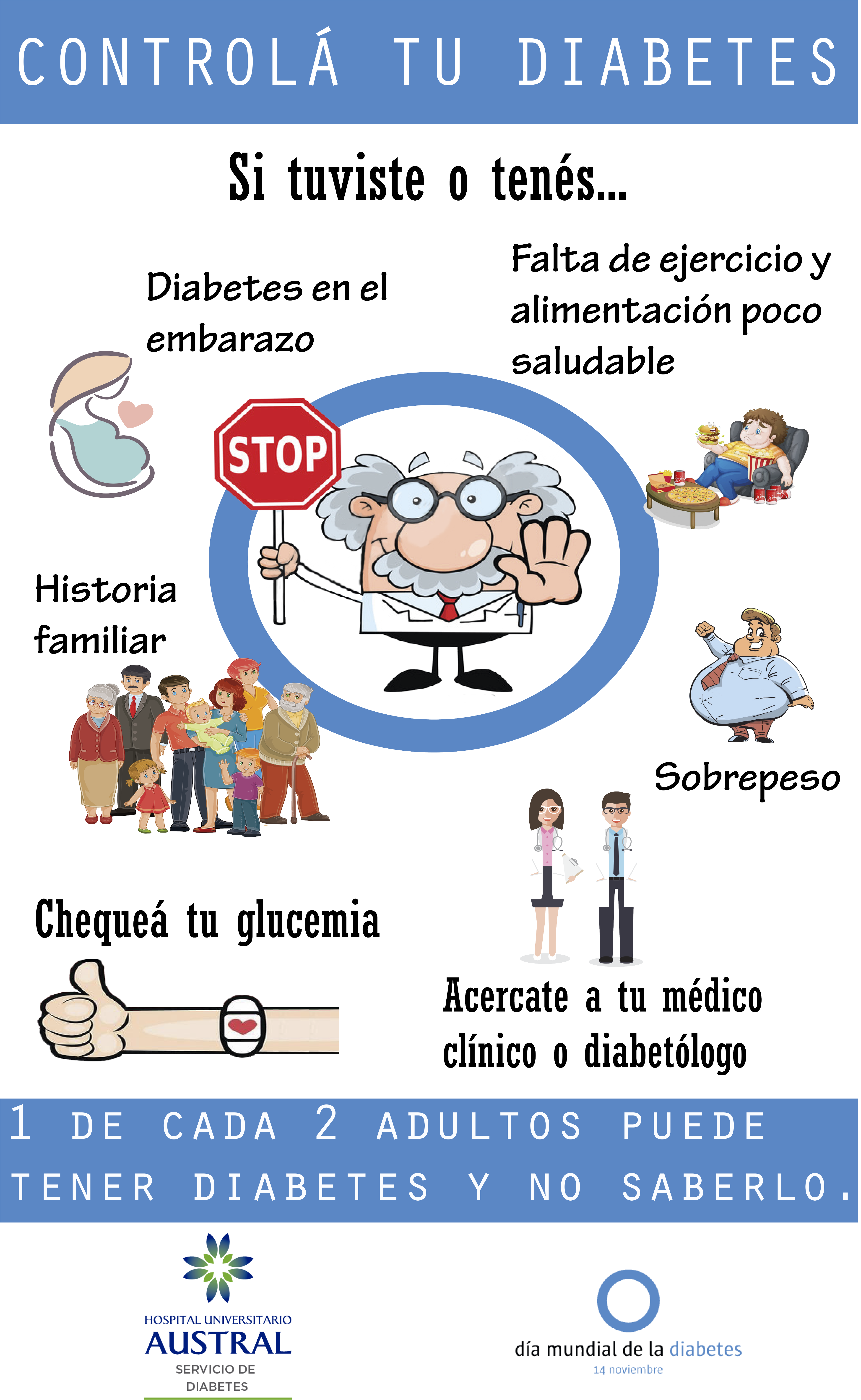 En el marco del Día Mundial de la Diabetes, el Hospital Austral realizará controles de glucemia el día martes 14 de noviembre en el hall principal del edificio. De 8.30 a 14, médicos y enfermeros del Servicio de Diabetes realizarán esta actividad gratuita para educar y prevenir a la comunidad.