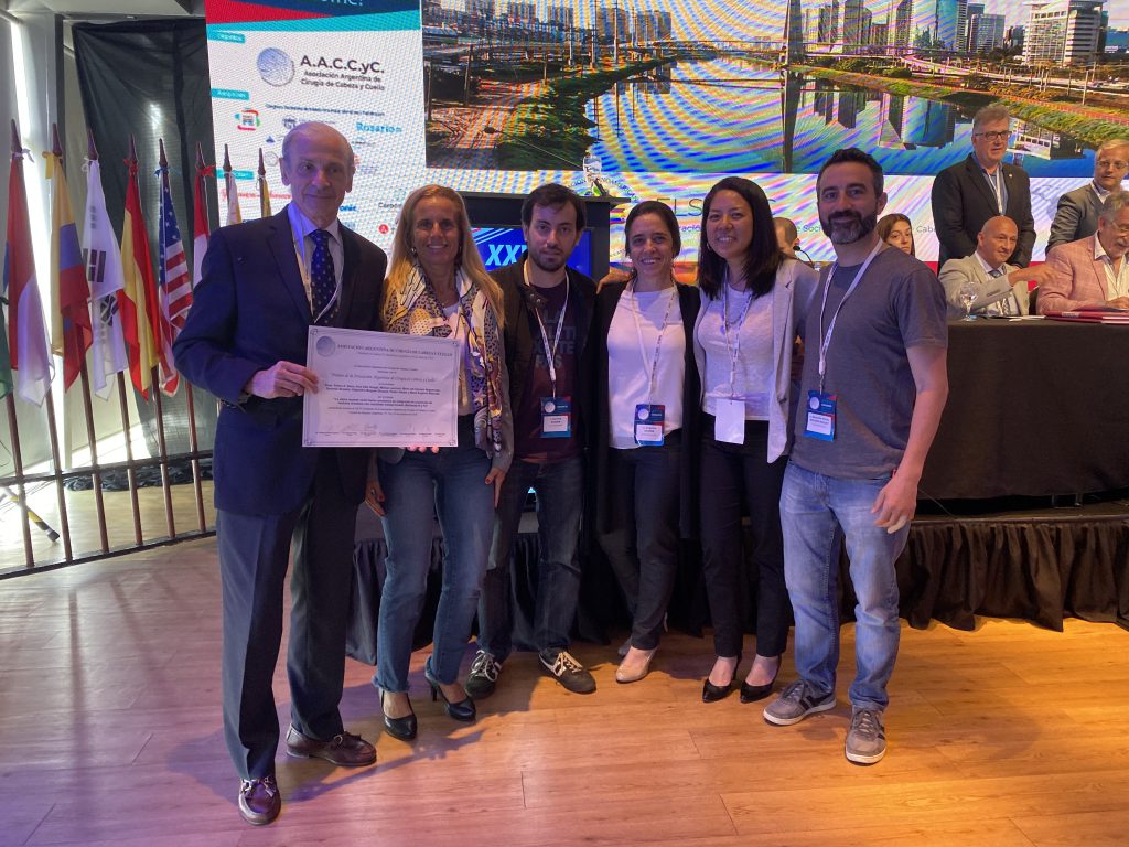 El equipo de Cirugía de Cabeza y Cuello y Oncológica de partes blandas, el Servicio de Endocrinología y el Servicio de Anatomía Patológica del Hospital Universitario Austral ganaron el primer premio al mejor trabajo científico en el Congreso de la Asociación Argentina de Cirugía de Cabeza y Cuello.