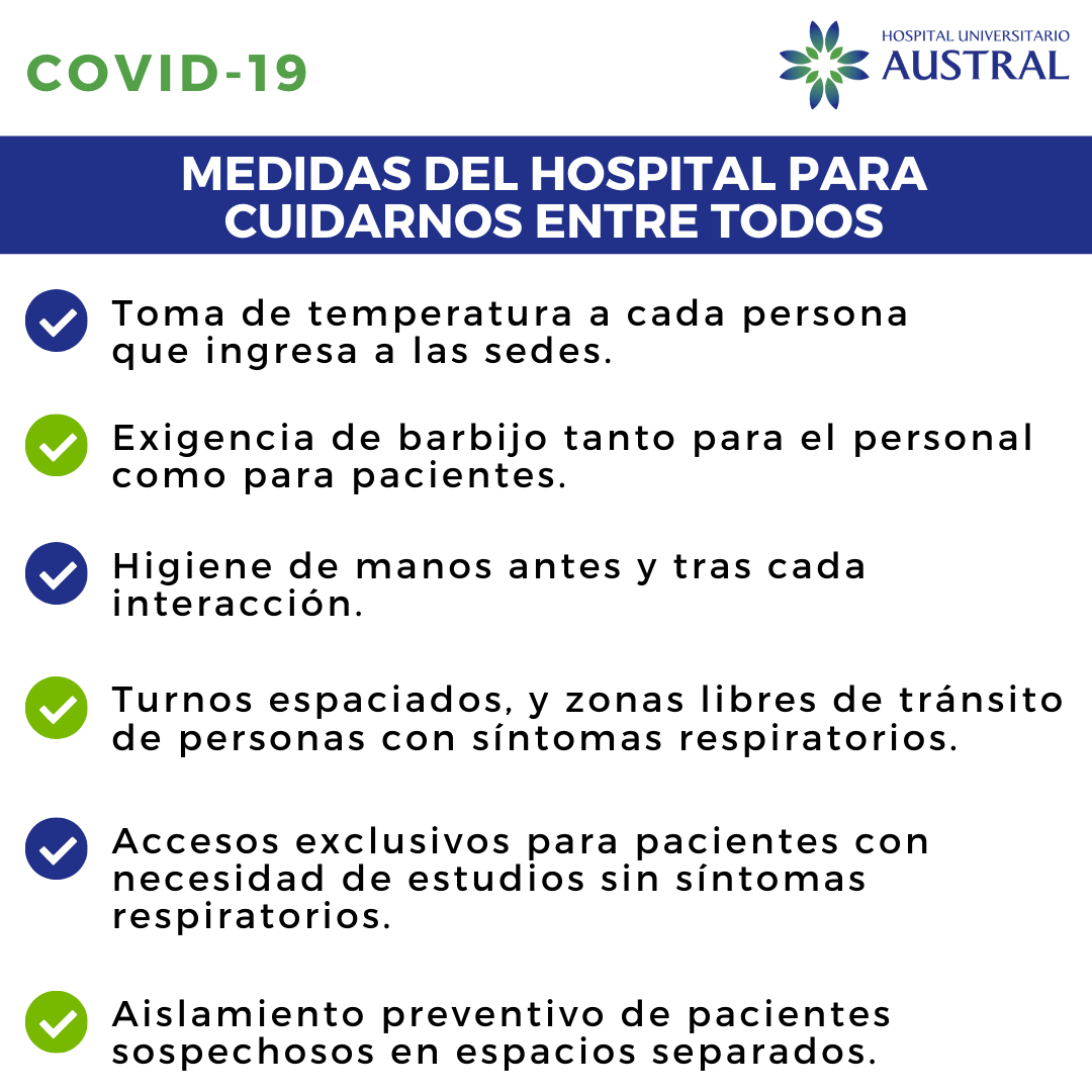 En el Hospital Universitario Austral tomamos medidas frente a la pandemia porque queremos cuidarte. Por eso, te ofrecemos más de 50 especialidades para que puedas realizar la consulta virtual con tu médico de cabecera y continuar tu atención desde la comodidad de tu hogar.