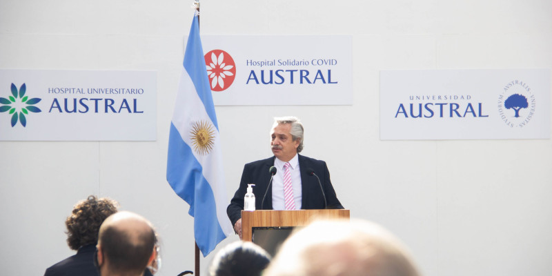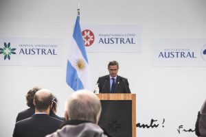 Con la presencia del Presidente de la Nación, el Intendente de Pilar, el Jefe de Gabinete de Ministros, y los ministros de Salud de la Nación y de la Provincia se puso en marcha el Hospital Solidario COVID Austral. Participaron numerosos amigos y donantes de la Universidad Austral y el Hospital Universitario Austral, sin los cuales no hubiese sido posible este hospital de cuidados críticos creado exclusivamente para la atención de pacientes graves de Coronavirus que derive el sistema público de salud.
