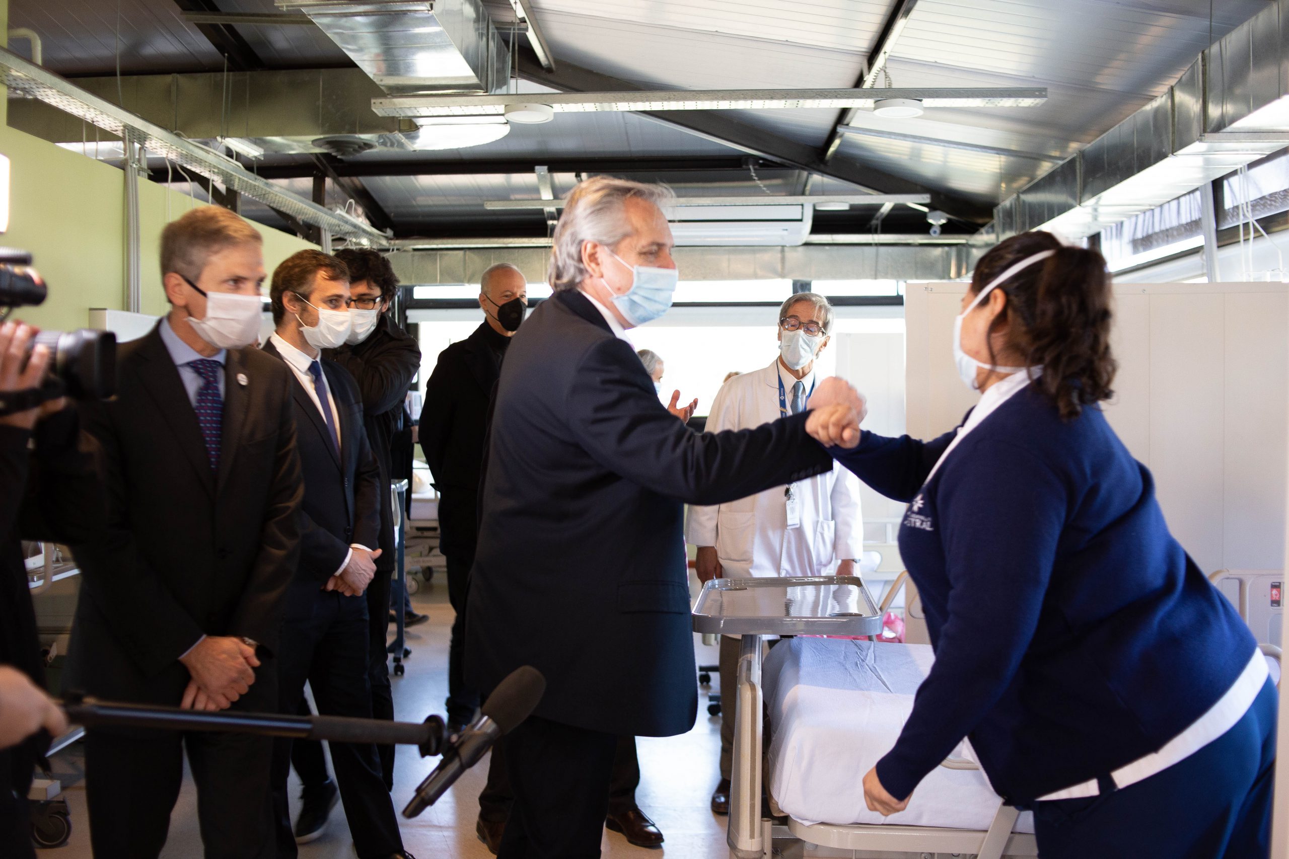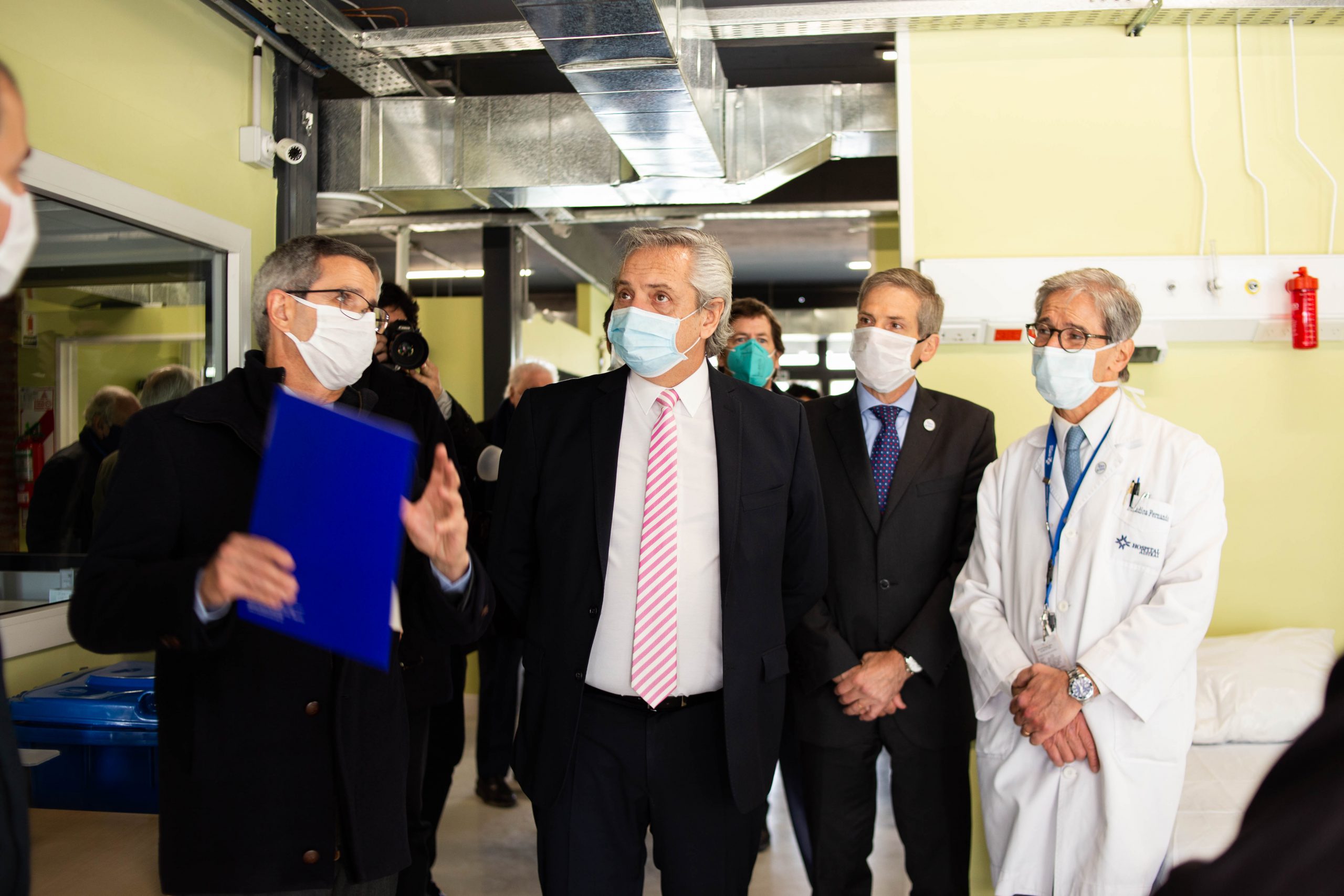 El acto comenzó con la bendición de las instalaciones por parte del Obispo de Zárate Campana monseñor Pedro María Laxague y el Vicario del Opus Dei para la Argentina pbro. Víctor Urrestarazu. Y permitió al Presidente y a los concurrentes conocer distintas historias de vida relacionadas con la pandemia, como el testimonio de enfermeras y médicos que vencieron a la enfermedad, y también el de generosos amigos del Hospital que llevan adelante un comedor solidario. El propio Presidente agradeció a los donantes y a la Universidad y al Hospital por el emprendimiento, y por haberle dado la oportunidad de “ver la cara de los que se enfermaron y se curaron, la carita de la que nació después de la preocupación y la enfermedad, la cara de los que nos siguen dando datos del virus que no conocemos, la cara de Arnaldo que es la cara de la solidaridad, como es la cara de la solidaridad del empresario de la construcción que lo ayuda. Podemos hacer un país mejor, no bajemos los brazos”.