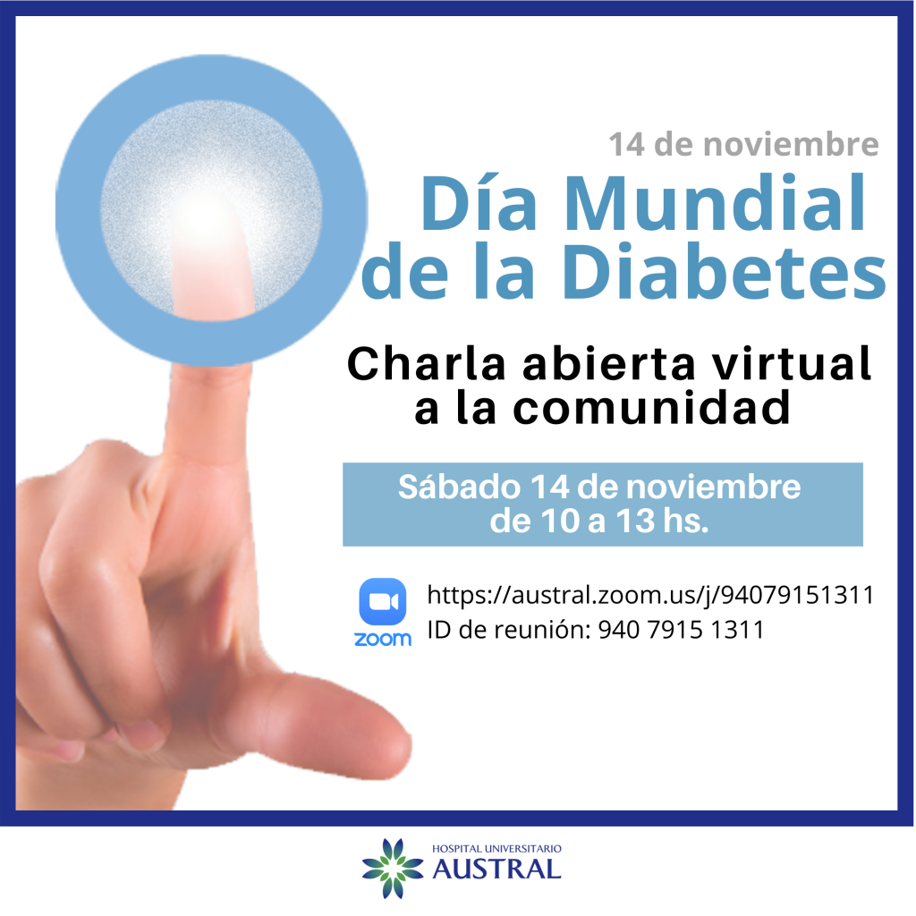 En este 2020, la pandemia generó que se reduzca la presencialidad, por eso el Hospital Universitario Austral se sumará a la campaña, que lleva de lema “La enfermera y la diabetes”, a través de charlas por Zoom el sábado 14 de 10 a 13. La actividad es libre y está dirigida a pacientes, familiares y aquellos interesados en informarse sobre la temática. El ID de la reunión es 940 7915 1311.