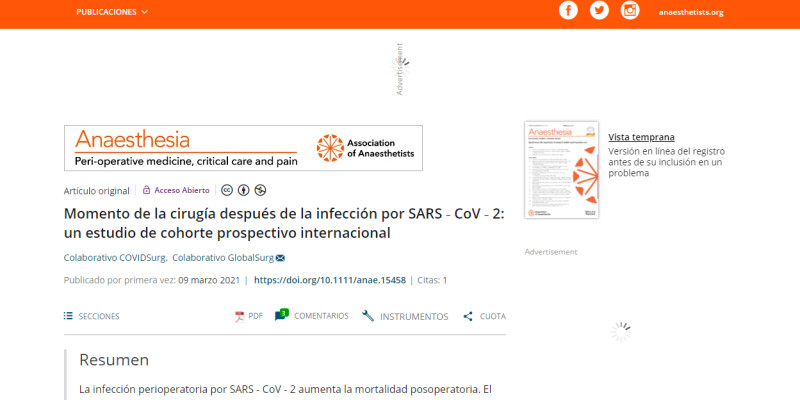Un estudio internacional publicado en la revista Anaesthesia evaluó a 140.231 pacientes de 116 países sometidos a cirugía electiva o de emergencia durante octubre de 2020. El objetivo fue determinar el tiempo óptimo que debe transcurrir desde la infección por COVID hasta la realización de una cirugía.
