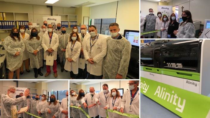 En el marco del Día del Bioquímico, celebrado el 15 de junio, se realizó el acto de corte de cinta inaugural y la bendición de las nuevas plataformas Abbott Alinity ci en el Laboratorio Central del Hospital Universitario Austral.