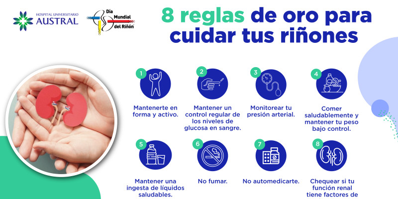 Cada año se celebra el Día Mundial del Riñón para crear conciencia sobre la importancia de la enfermedad renal y adoptar un estilo de vida saludable. Conocé las ocho reglas de oro de la World Kidney Day.