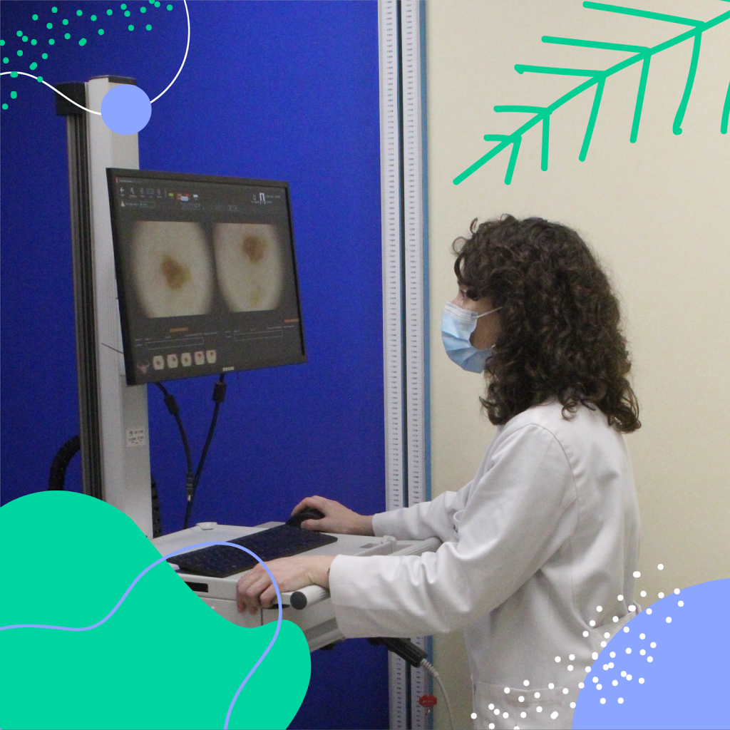 Nuestro Servicio de Dermatología cuenta con un equipo denominado FotoFinder Body Studio ATBM que permite tomar imágenes de toda la piel (fotografía corporal total) y, especialmente, de los lunares más significativos. Las cámaras del equipo amplían 20 veces el tamaño real de las características de los lunares.