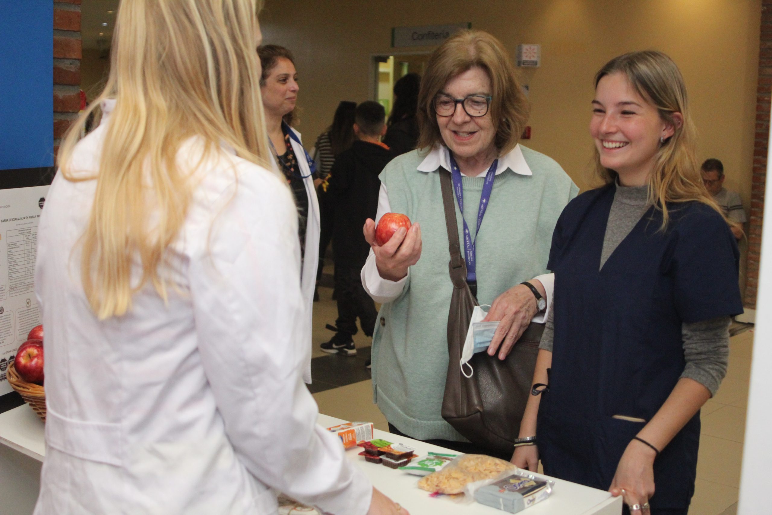 En la #SemanaDeLaAlimentación, los alumnos de Nutrición de la Facultad de Ciencias Biomédicas de la Universidad Austral brindaron un taller educativo sobre el Etiquetado Frontal, en el que participaron pacientes, staff y alumnos de la comunidad Austral.