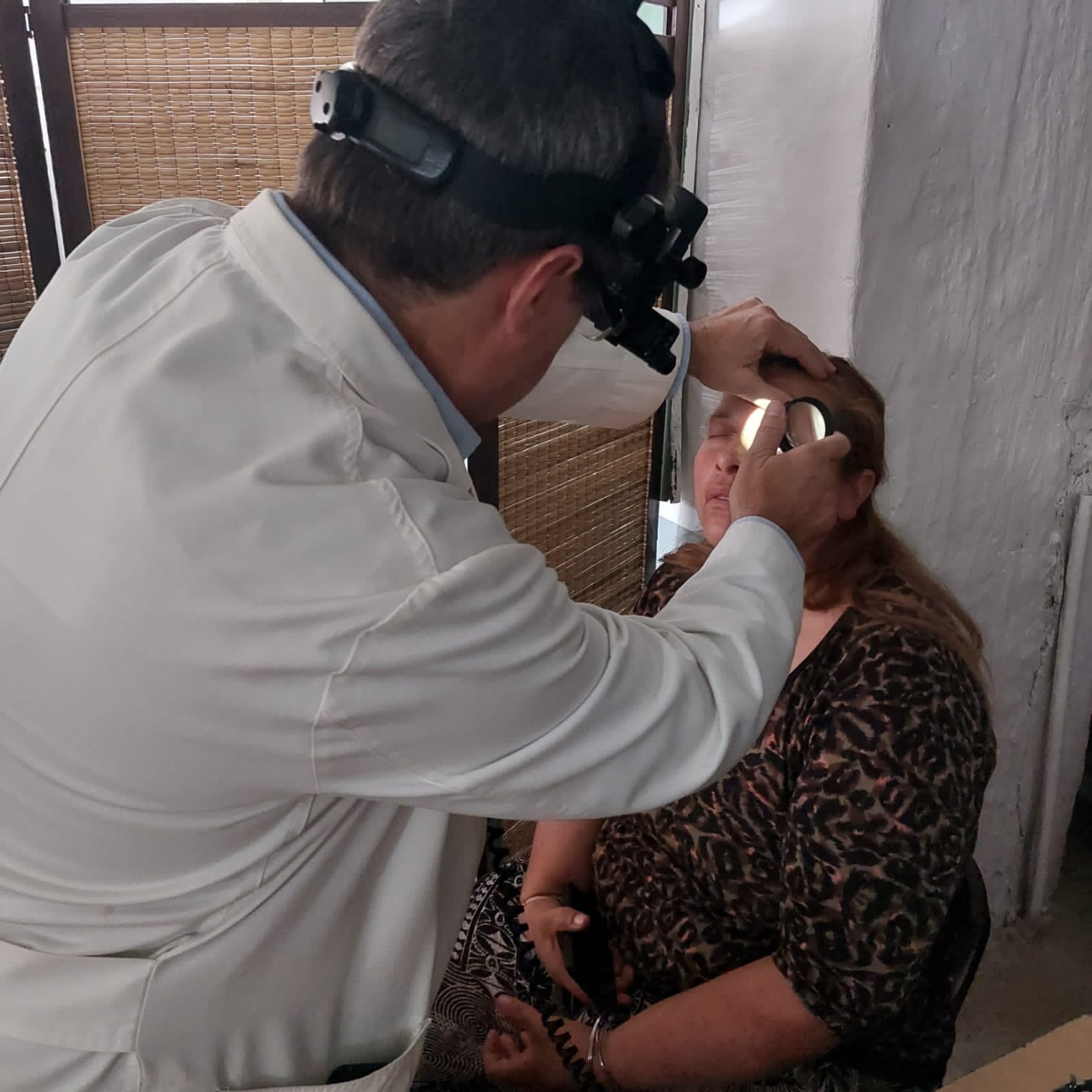 Durante la mañana, se logró examinar a 30 personas diabéticas, mientras que un equipo conformado por una licenciada en Enfermería y tres estudiantes de la carrera de Enfermería de la Universidad Austral se encargaron de realizar la medición de la agudeza visual y colocar un colirio para dilatación pupilar. Por último, el Dr. Gallo estuvo a cargo de realizar el fondo de ojo a los pacientes.