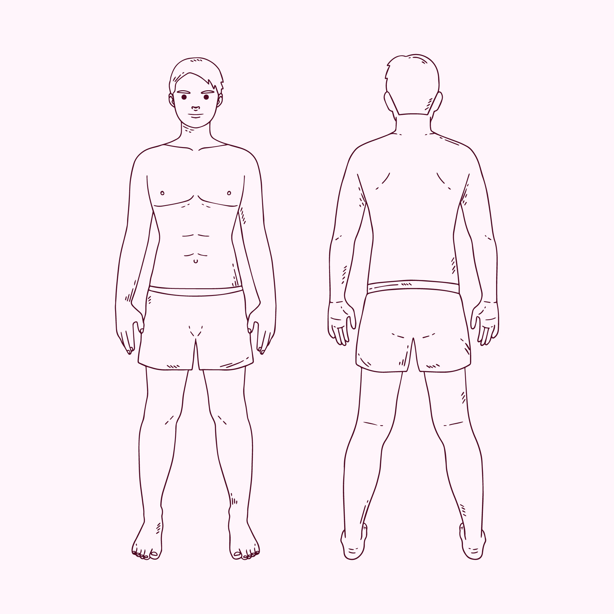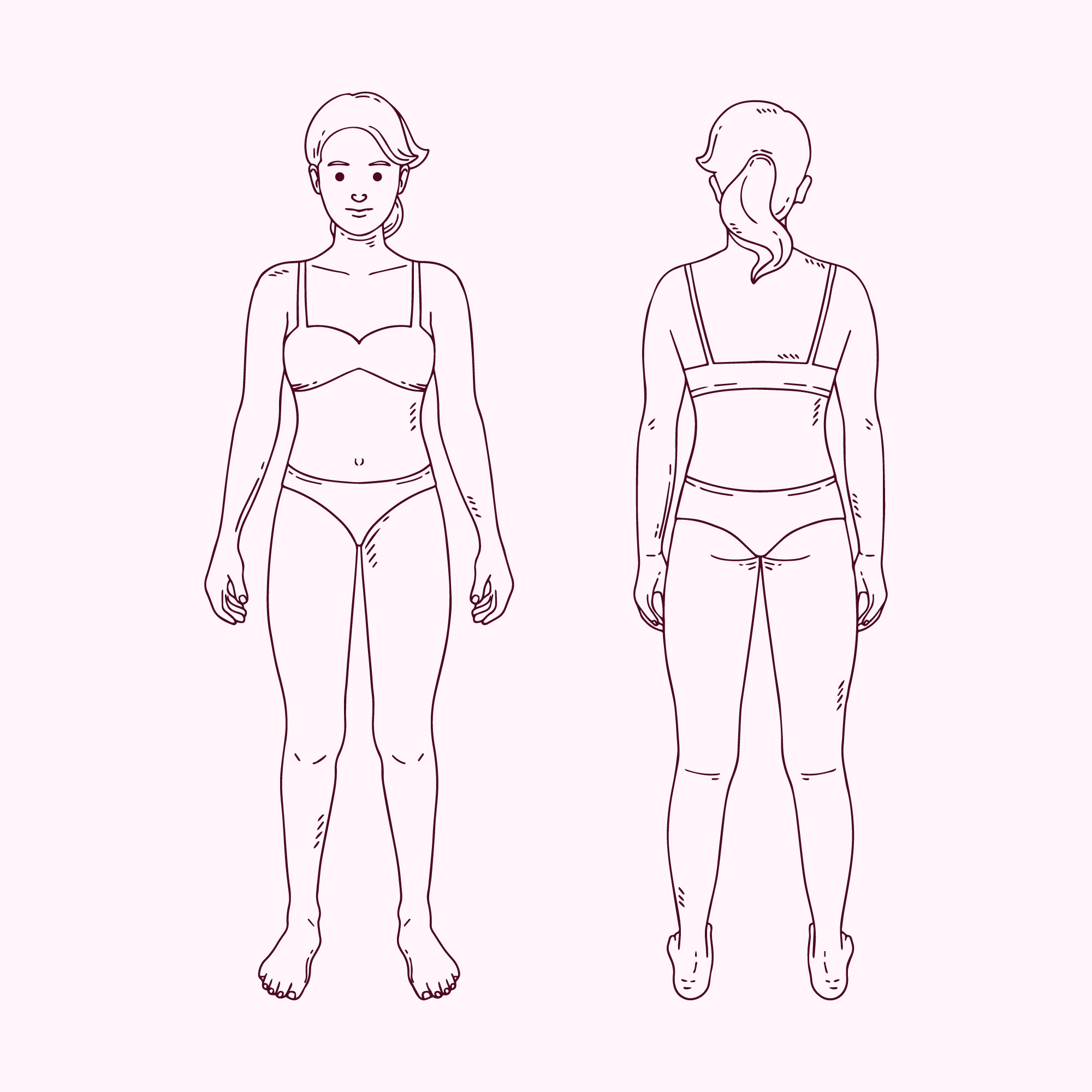 En el mapa corporal, marcá un punto correspondiente a la ubicación de cada peca, lunar de nacimiento, golpe, costras, escamas o mancha en la piel. Dibujá una línea para indicar el margen y la aproximación de su tamaño y color, y colocá la fecha.