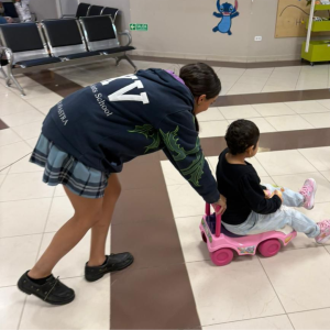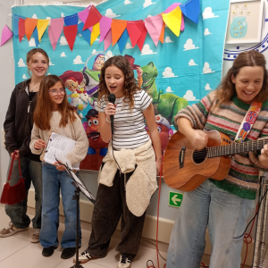La celebración comenzó el lunes 11 de agosto, con la visita del coro de padres del colegio St. Mary of the Hills, que sorprendió a nuestra internación pediátrica con su música. La Sala de Juegos Terapéutica se vistió de fiesta gracias al trabajo de las voluntarias del Colegio Buen Ayre, que decoraron el espacio, y de las voluntarias del Colegio San Andrés, que organizaron actividades y juegos para los pacientes. Allí vivimos una tarde inolvidable junto a Sol Mihanovich, que llenó de canciones y energía el ambiente. Además, cada niño recibió un regalo y pudo disfrutar de una merienda especialmente preparada por el Servicio de Alimentación y Nutrición de nuestro Hospital, que año tras año acompaña con tanto cariño.