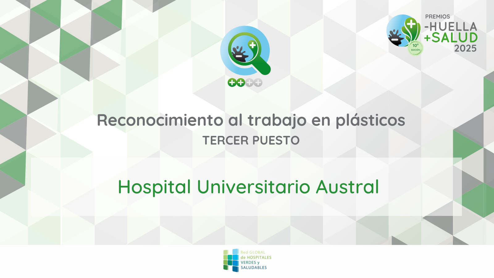 El Hospital Universitario Austral es miembro de la Red Global de Hospitales Verdes y Saludables, una comunidad mundial de hospitales, sistemas de salud y organizaciones profesionales y académicas que trabajan para reducir su huella ecológica y promover la salud ambiental pública. La Red Global es una iniciativa de Salud sin Daño, organización internacional no gubernamental que impulsa la transformación del sector de la salud para que reduzca su impacto ambiental, se convierta en un referente comunitario en sostenibilidad y se posicione como líder del movimiento global por la salud y la justicia ambientales.