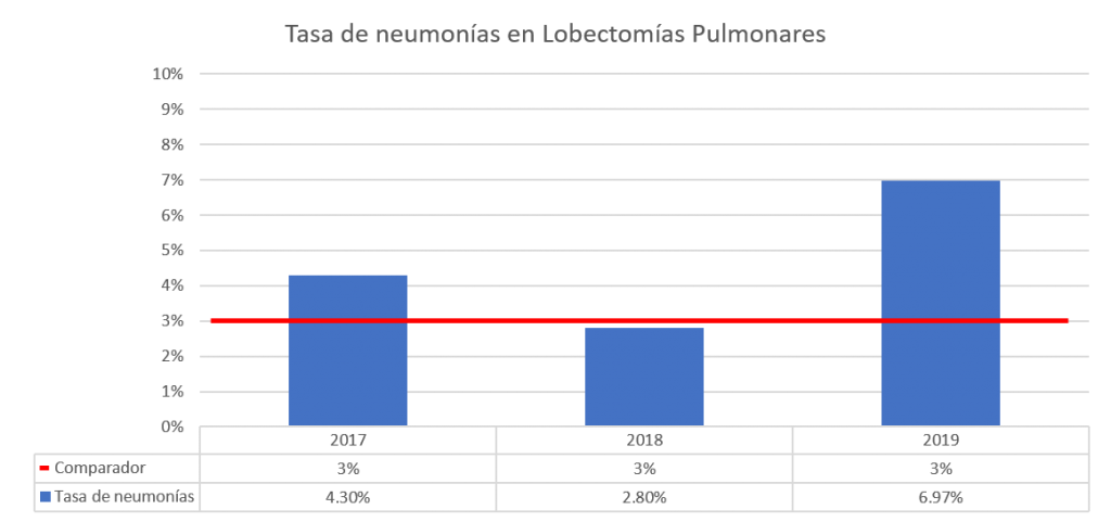 - La neumonía es una de las complicaciones posibles luego de una lobectomía pulmonar. La tasa de neumonía postoperatoria en el servicio es baja y se encuentra dentro de valores de referencia mundiales.