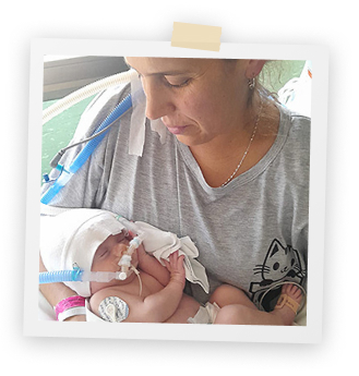 Nuestro guerrero estuvo más de un mes con asistencia de oxígeno, hasta que comenzó a respirar solito. Se fue descomplejizando, poco a poco fueron disminuyendo las drogas, su herida fue cicatrizando y fue evolucionando. Llegó el día tan especial de poder sostenerlo en brazos, ese momento tan deseado de poder sentir su calor, tocar su piel, sentir su olor.