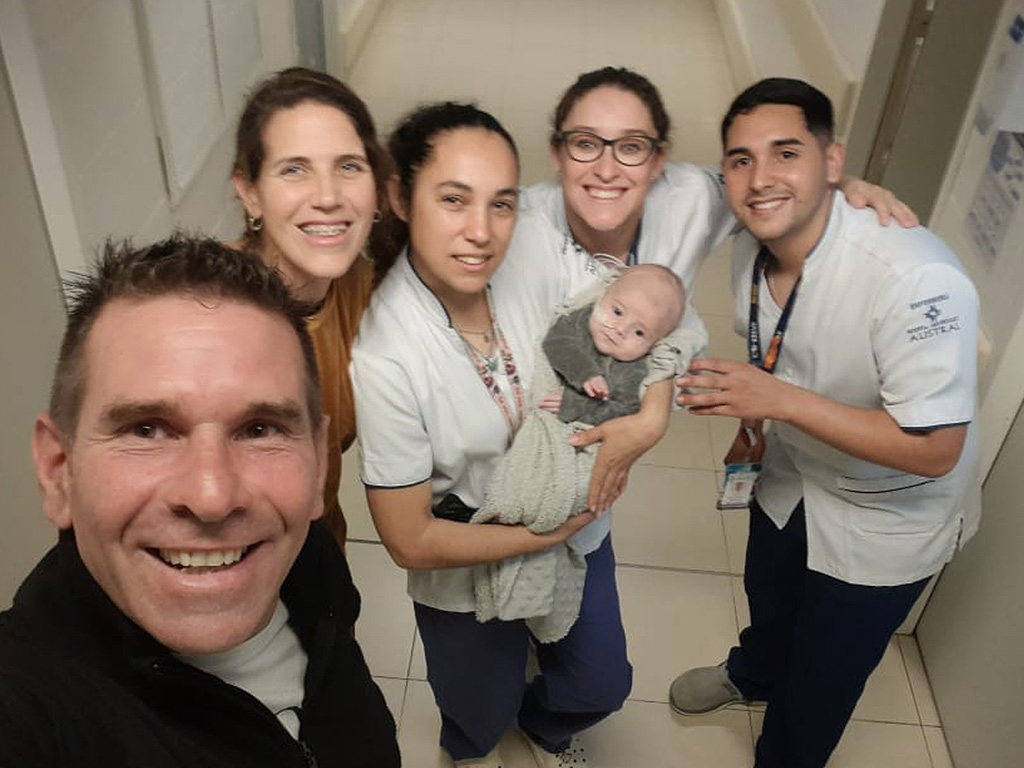 Saber que nuestro bebé tenía que nacer en un lugar de alta complejidad, pero no saber dónde ir, fue tan desesperante que no podíamos ni pensar cómo seguir. Pero si algo nos enseñó este proceso es que las personas justas aparecen en el momento justo, y así fue como encontramos la cuenta de Instagram de una mamá muy activa en la difusión de esta patología, por haber atravesado su propia experiencia con su bebé. Con muy buena predisposición nos escuchó y, sin dudarlo, nos dijo: “Váyanse al Austral”. Sin perder más tiempo, emprendimos viaje a Buenos Aires.