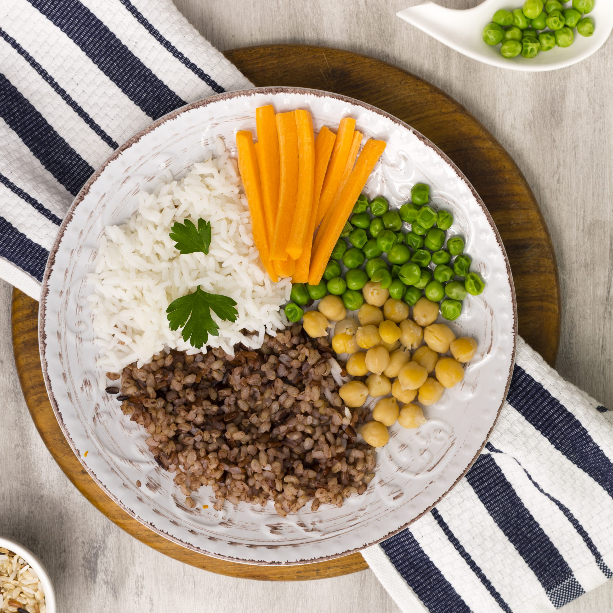 •Cortar en cubos todas las verduras y hervirlas por separado. Cuando los vegetales estén tiernos añadir el arroz y las lentejas y terminar de cocinar todo junto al menos 5 minutos más.