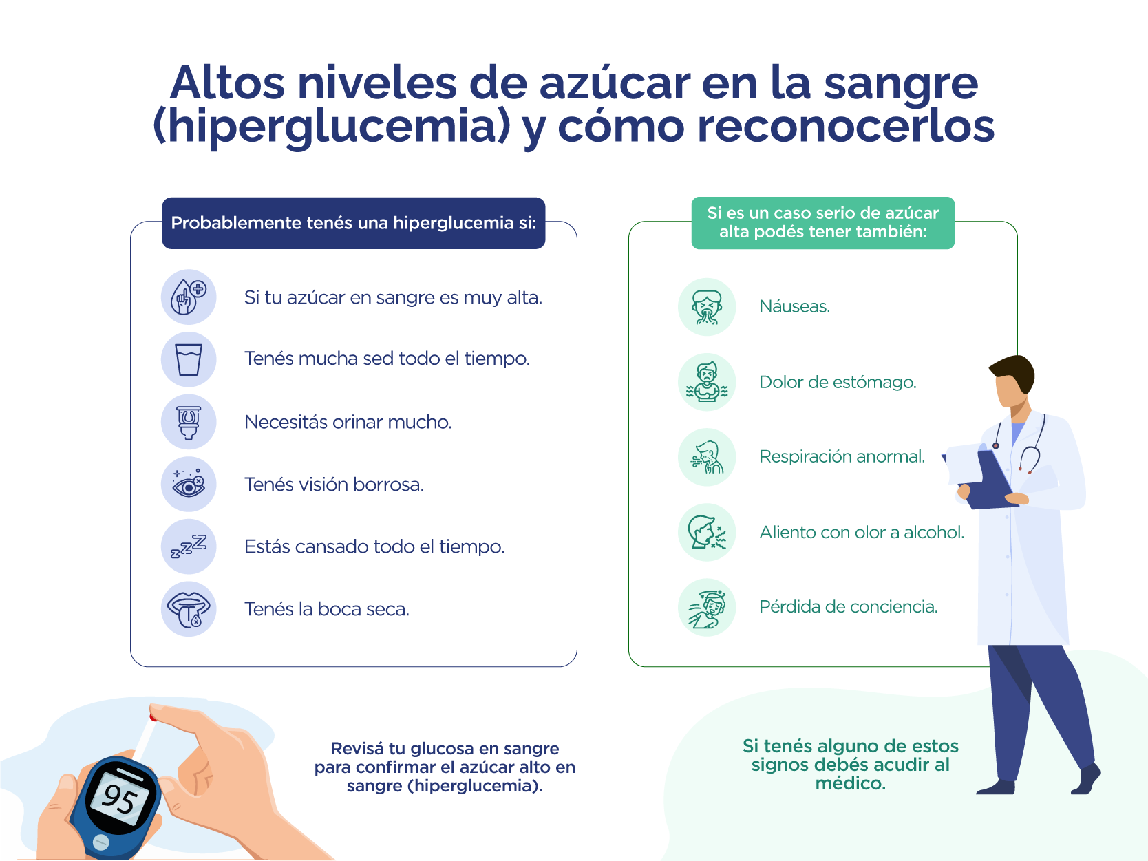 - Si tenés valores mayores a 250mg % y orinás más frecuentemente y/o tenés mucha sed.
