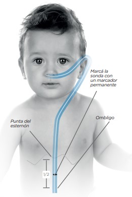 - Si es necesario, pedí que te ayuden a sostenerlo/a o envolvé al niño/a para inmovilizarlo mientras introducís la sonda.