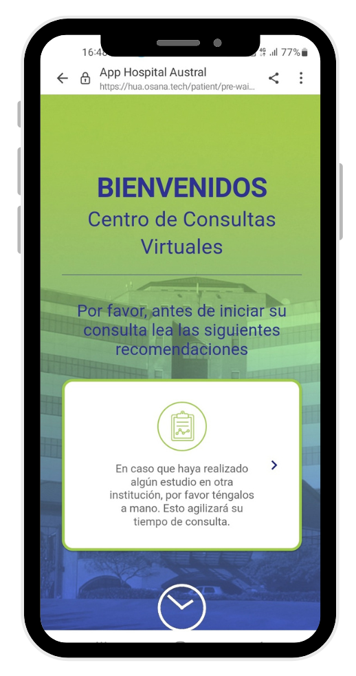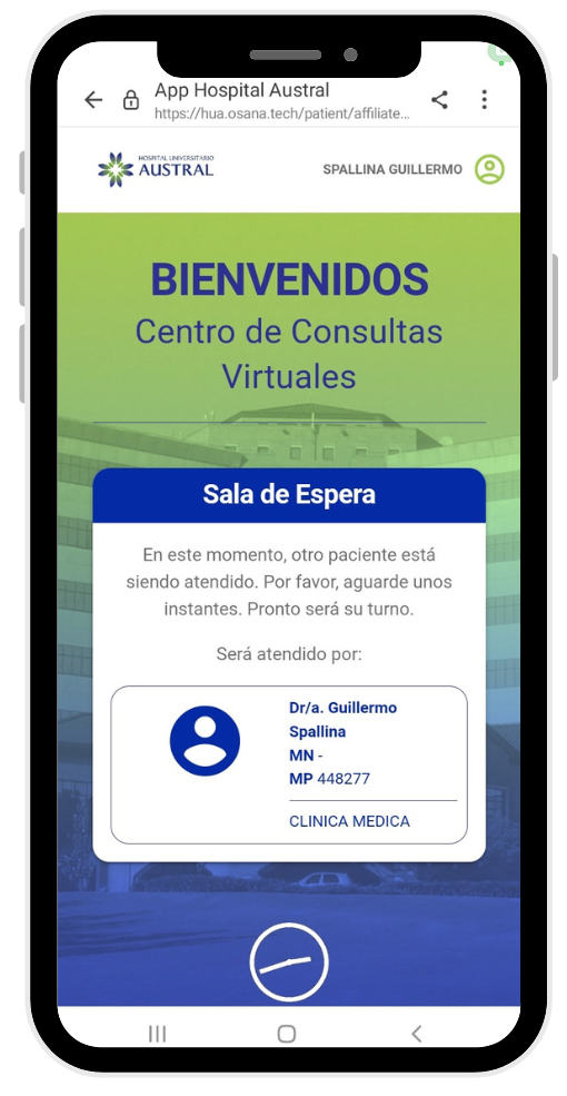 Al ingresar a la consulta virtual, accederás a una pre sala de espera.