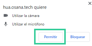 - Si utilizás la plataforma desde una PC o notebook, el sistema te solicitará permiso para habilitar la cámara y el micrófono. Deberás «permitir» y no «bloquear».