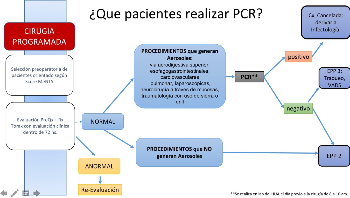 Cada equipo quirúrgico deberá chequear los resultados de PCR de sus pacientes el día previo.