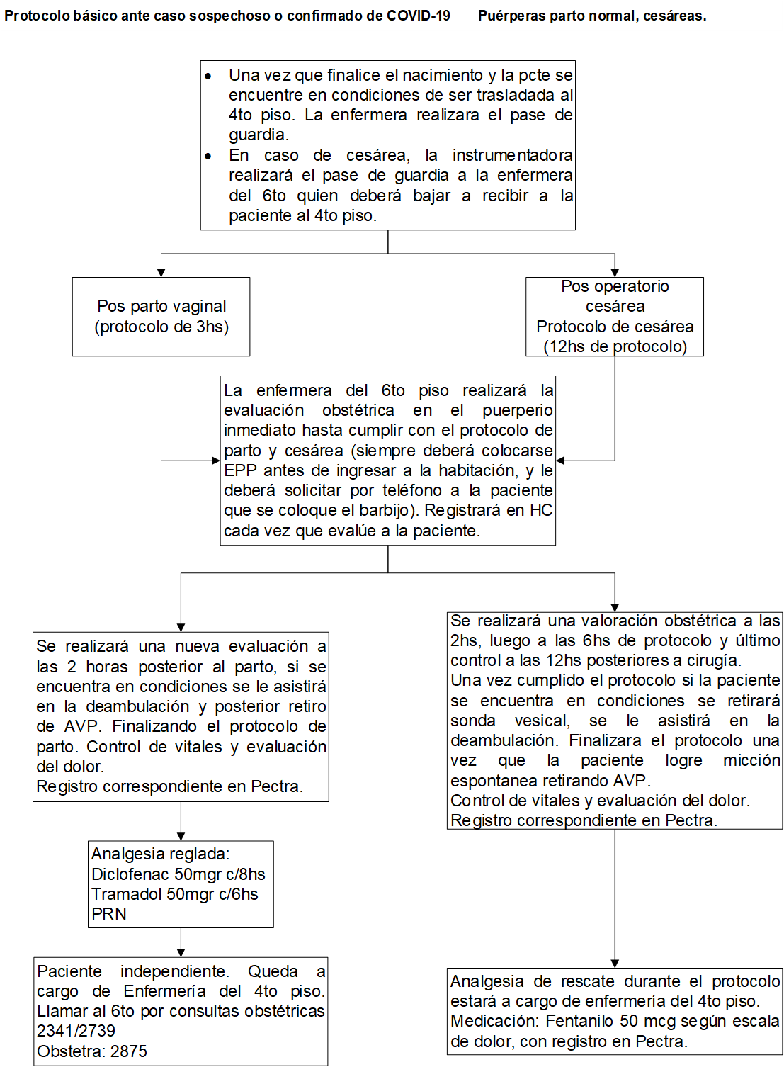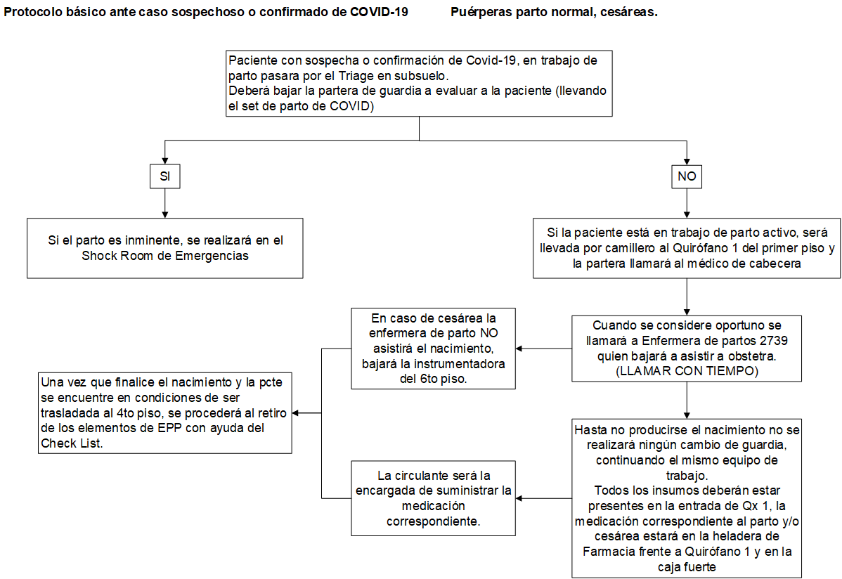 En caso de cesárea o parto en pacientes con caso sospechoso o confirmado de Covid-19 el personal de salud perteneciente al Departamento Materno-Infantil podrán utilizar ambo color verde o rosa.