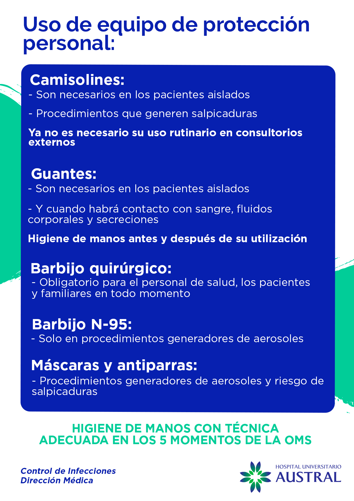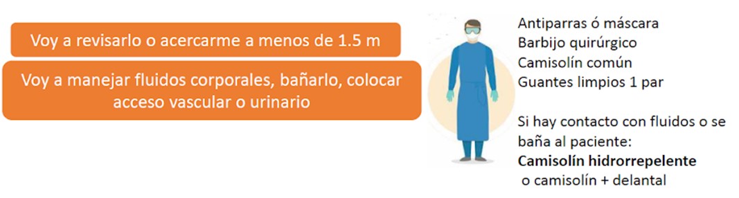 b. El personal debe contar con EPP acordes a las medidas de prevención de transmisión por gota y contacto (camisolín, barbijo quirúrgico, guantes, antiparras).