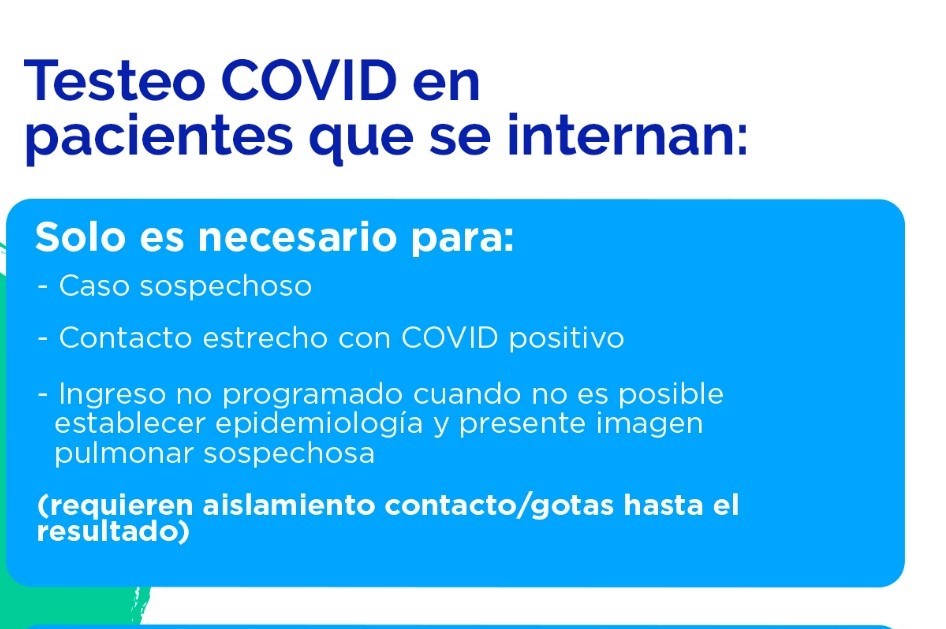 b. Costo beneficio, en una internación corta: es mejor protegerse de un posible portador asintomático (costo de elementos de protección) que ver si el paciente es COVID + asintomático (costo de las PCR en insumos y tiempos). Además, existen falsos negativos.