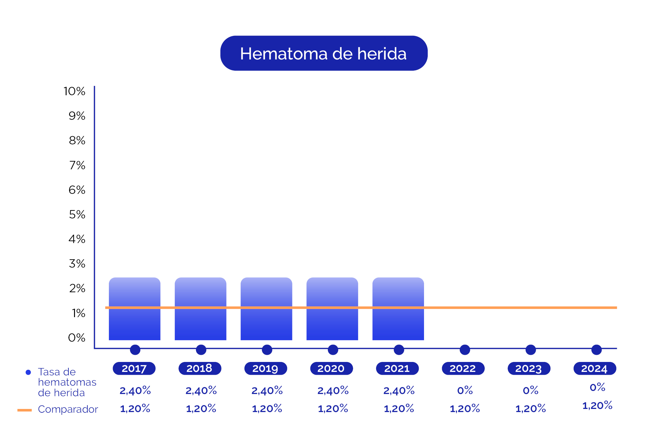 Hematoma de herida: es la acumulación de sangre en la herida quirúrgica, que puede requerir, o no, la reapertura de la misma.