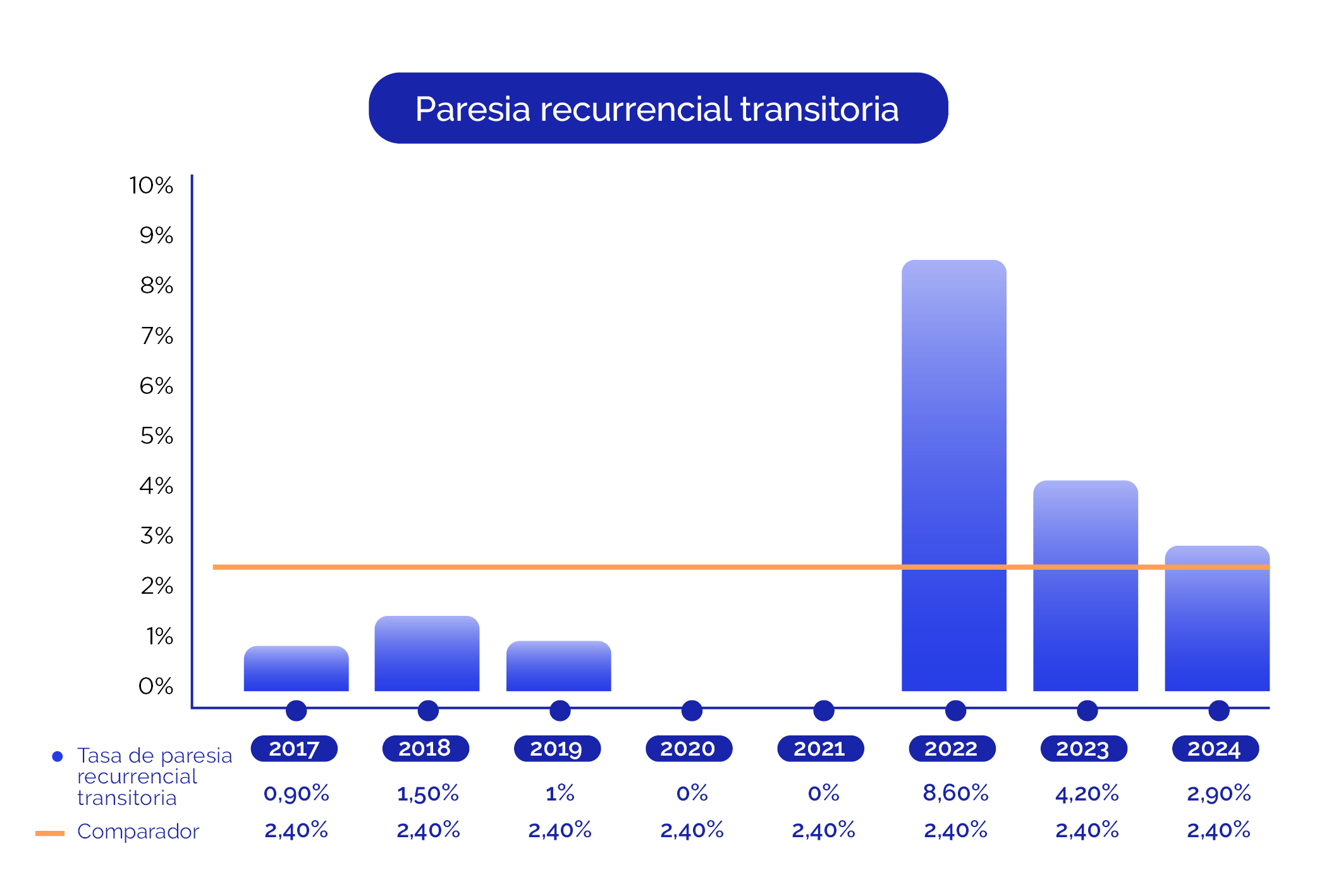 Paresia recurrencial transitoria: es la disminución de la movilidad de la cuerda vocal ocasionada por la alteración del nervio (recurrente) que controla su movimiento y que produce un cambio transitorio en el tono de la voz.