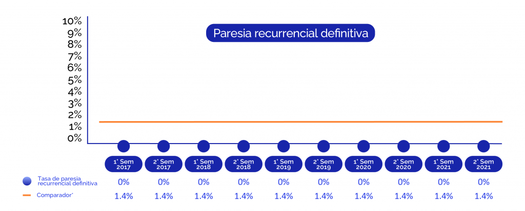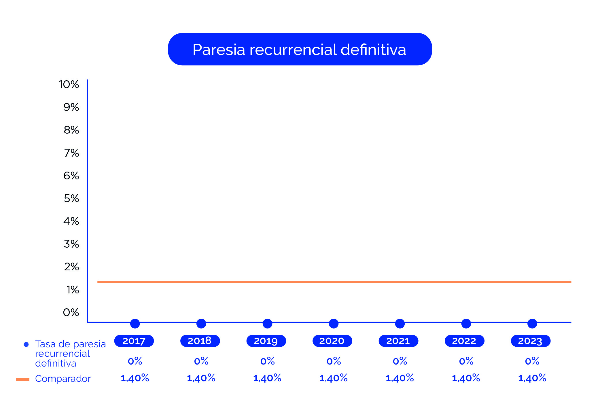 Paresia recurrencial definitiva: es la pérdida completa de la movilidad de la cuerda vocal ocasionada por alteración del nervio (recurrente) que controla su movimiento y que produce un cambio permanente en el tono de la voz.