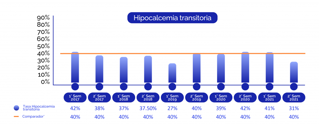 Hipocalcemia transitoria: es la disminución temporaria del nivel de calcio en sangre ocasionada por la alteración del funcionamiento de las glándulas paratiroides y que requiere recibir calcio por un tiempo limitado.