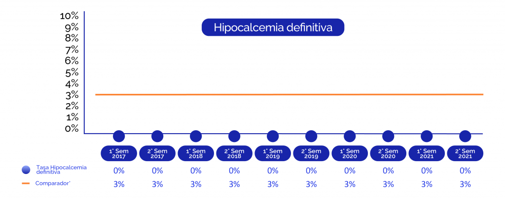 Hipocalcemia definitiva: es la disminución sostenida del nivel del calcio en sangre ocasionada por la alteración del funcionamiento de las glándulas paratiroides y que requiere recibir calcio en forma permanente.