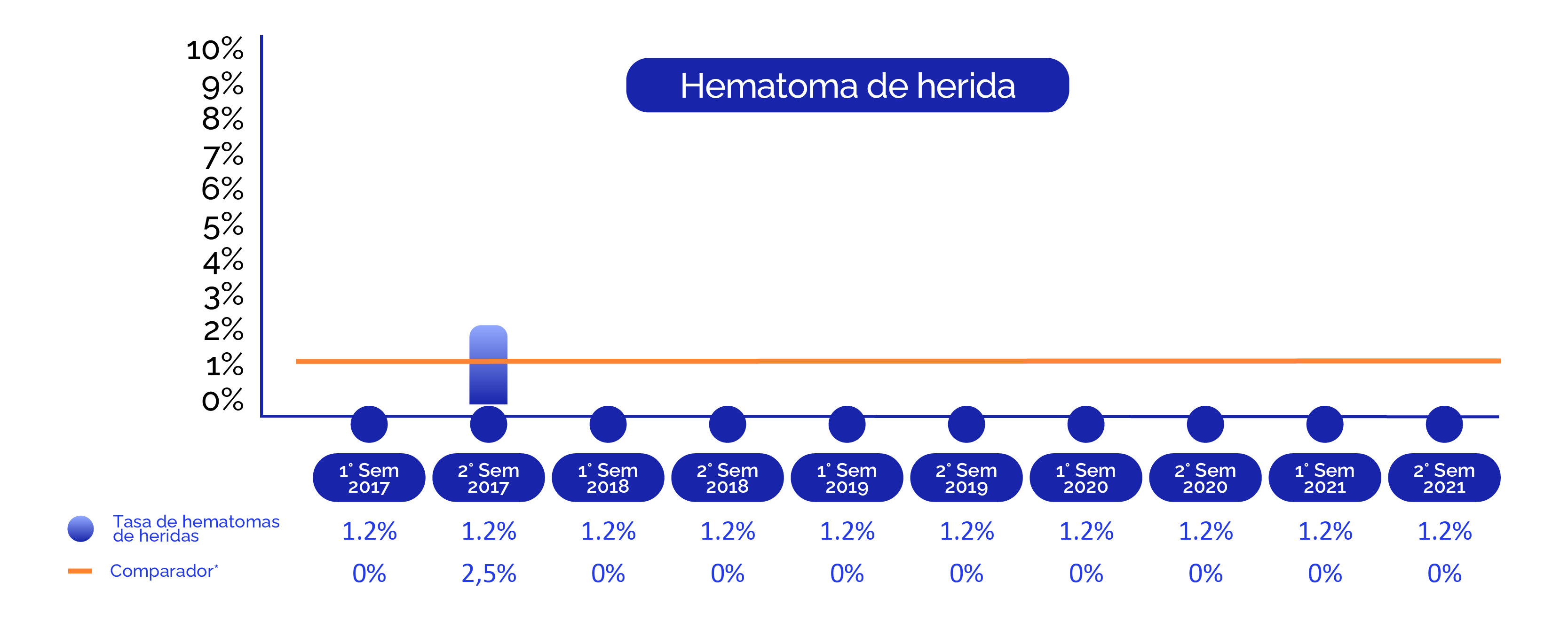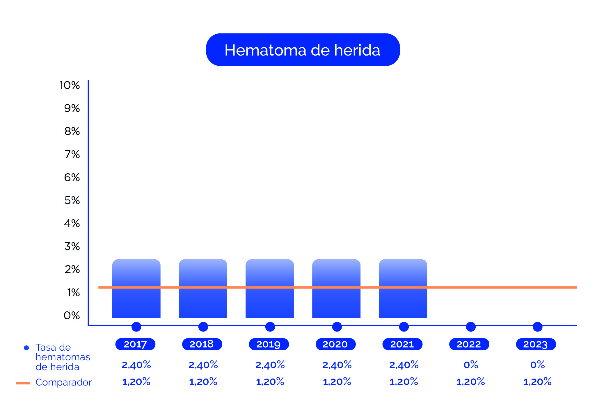 Hematoma de herida: es la acumulación de sangre en la herida quirúrgica, que puede requerir, o no, la reapertura de la misma.