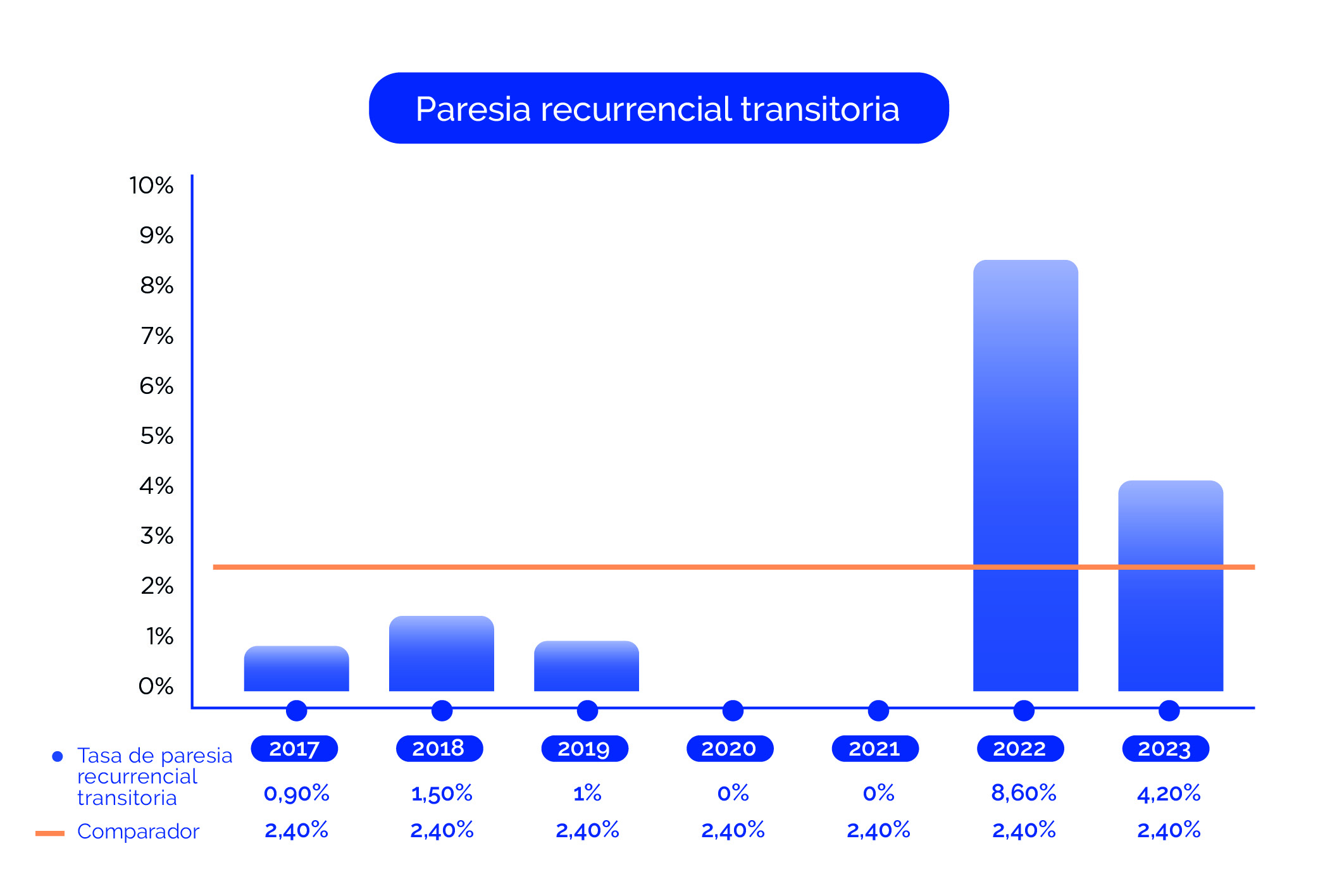 Paresia recurrencial transitoria: es la disminución de la movilidad de la cuerda vocal ocasionada por la alteración del nervio (recurrente) que controla su movimiento y que produce un cambio transitorio en el tono de la voz.
