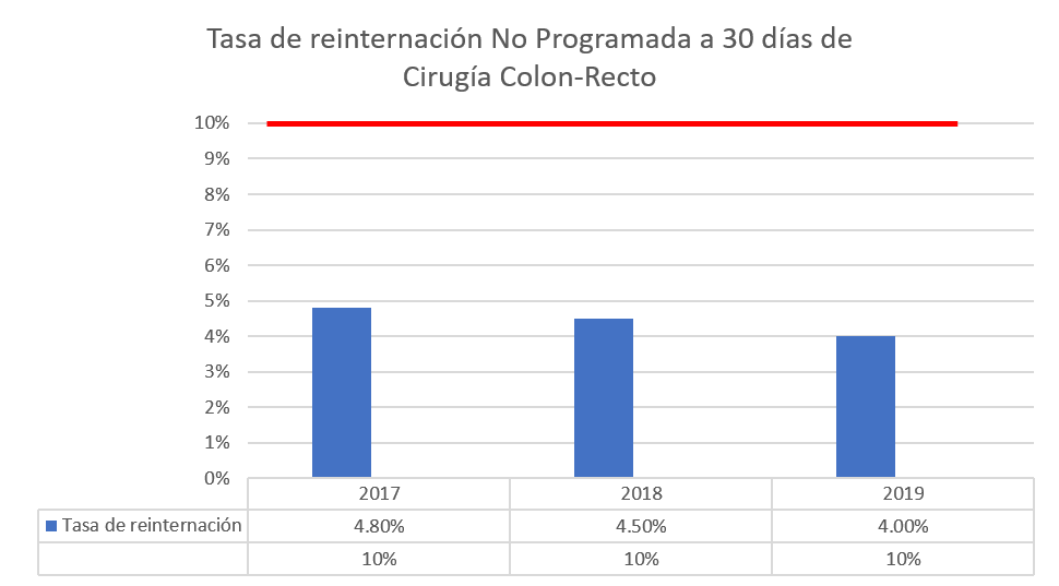 Es el peso relativo, dentro del total de ingresos de un establecimiento. Se refiere a pacientes que antes de los 30 días de haber egresado, vuelven a internarse por la misma patología o una complicación de la cirugía para tratarla. La intempestividad de un reingreso no previsto presupone la existencia de procesos no detectados o valorados adecuadamente por el equipo interviniente, lo cual genera un impacto negativo en la evolución de la recuperación del paciente.