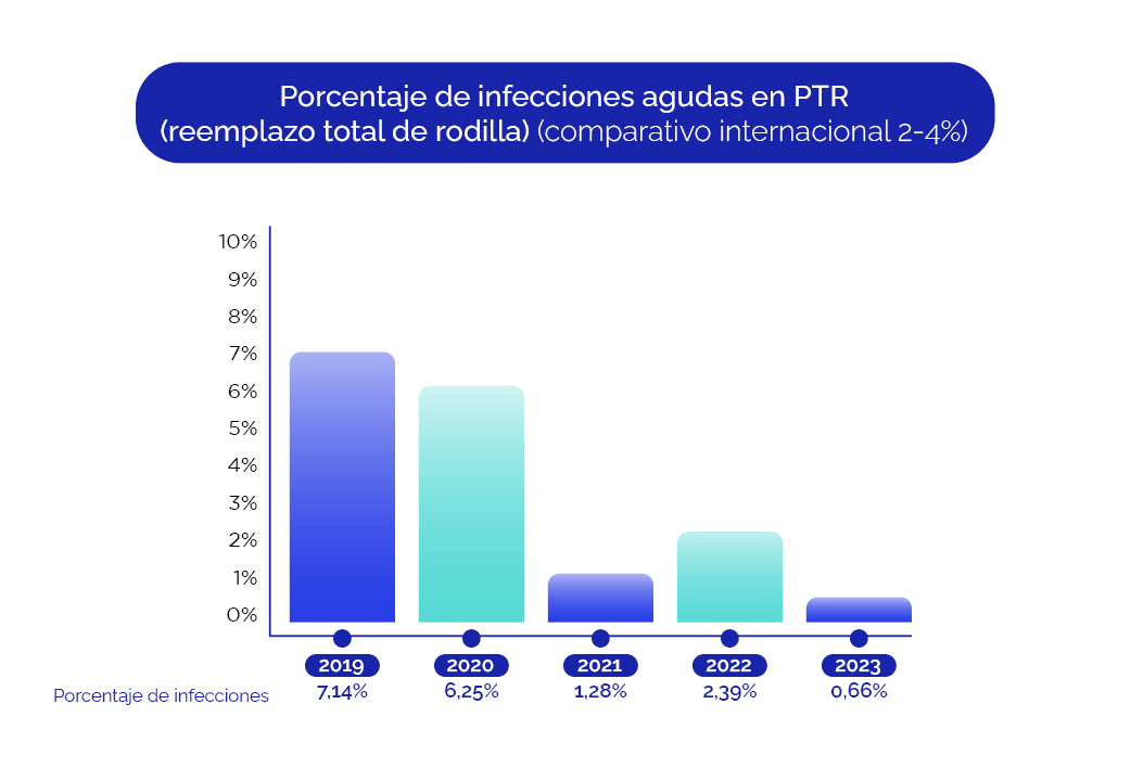 La infección periprotésica de rodilla es una de las complicaciones más temidas de la cirugía de rodilla. A pesar de ser infrecuente, su prevalencia es considerada un estándar de calidad del centro y el equipo médico interviniente en la cirugía.