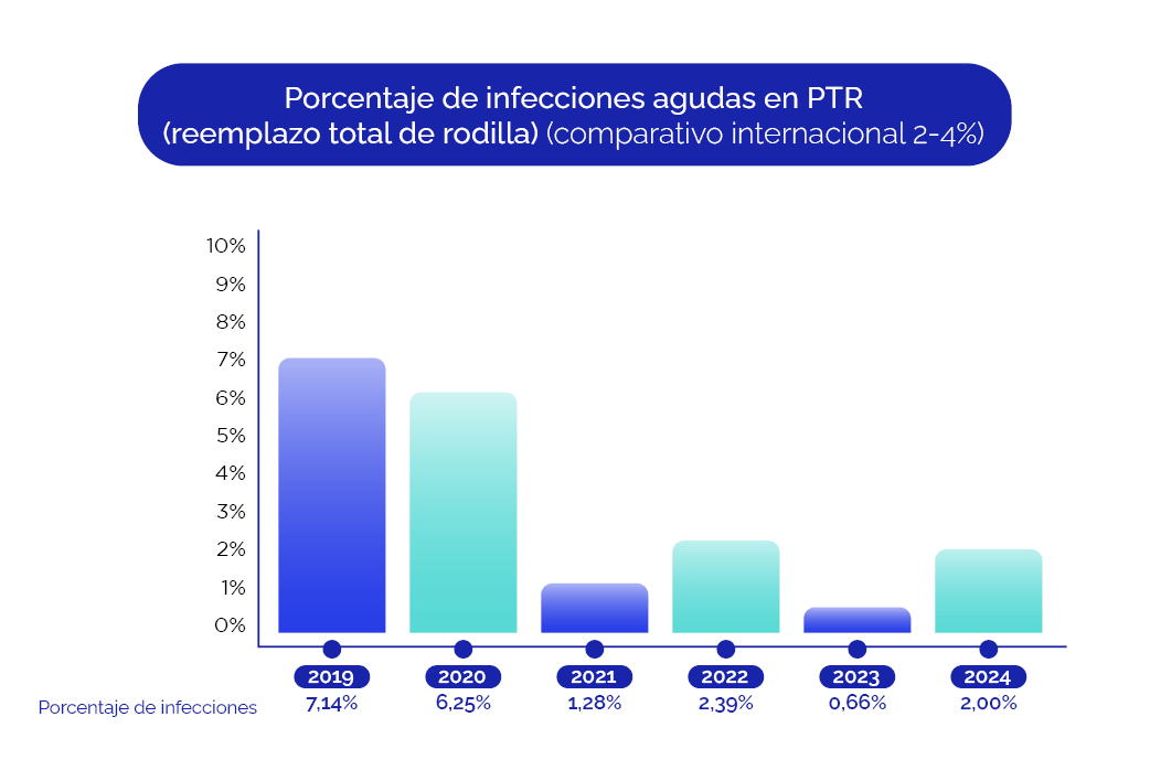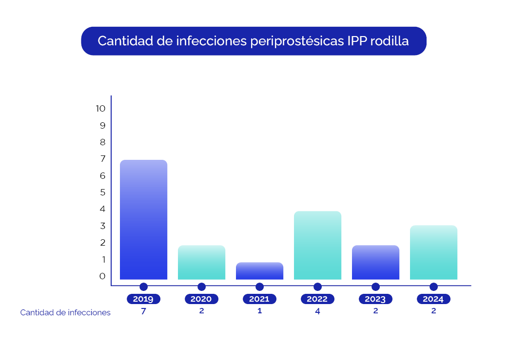La infección periprotésica de rodilla es una de las complicaciones más temidas de la cirugía de rodilla. A pesar de ser infrecuente, su prevalencia es considerada un estándar de calidad del centro y el equipo médico interviniente en la cirugía.