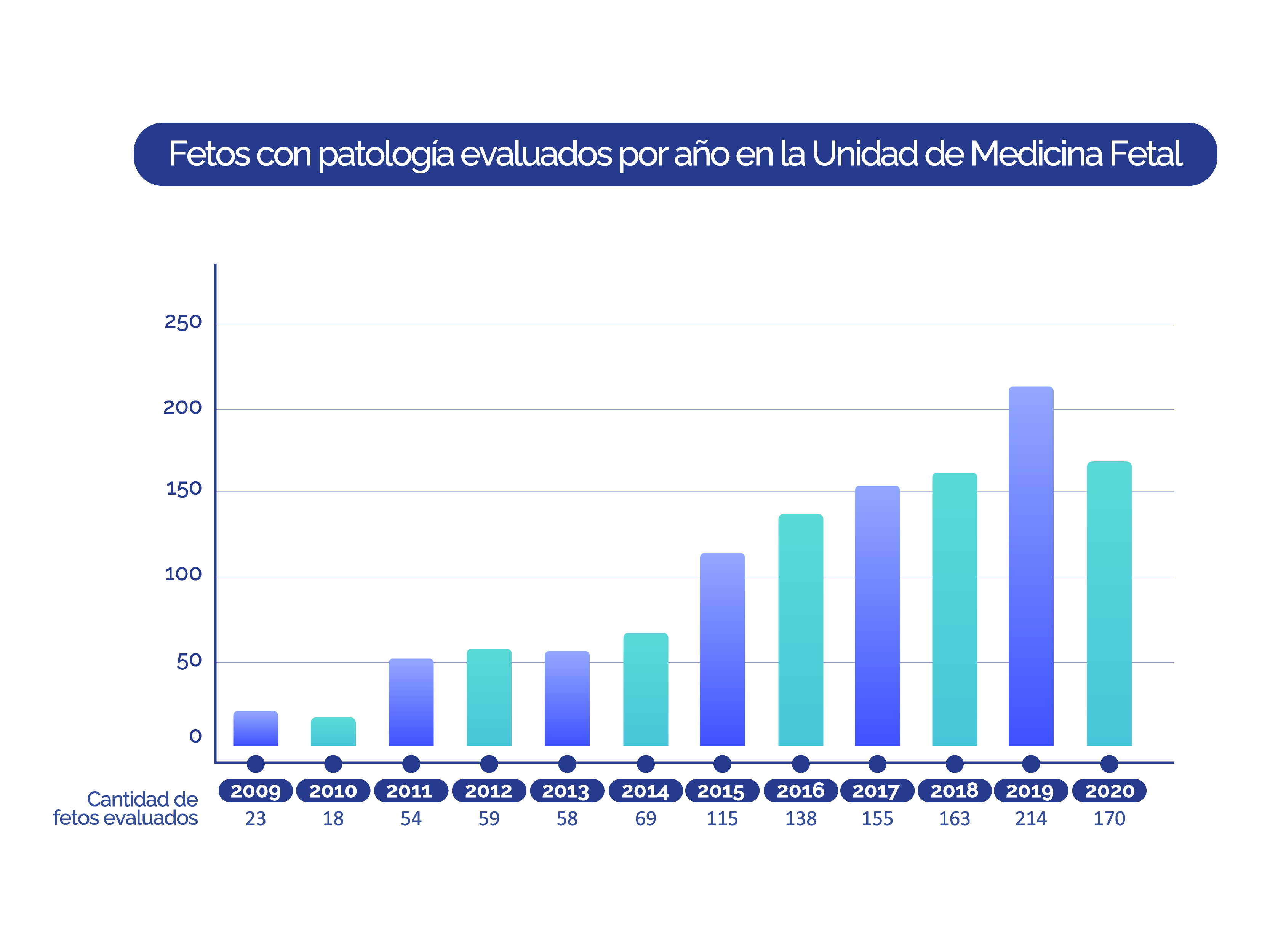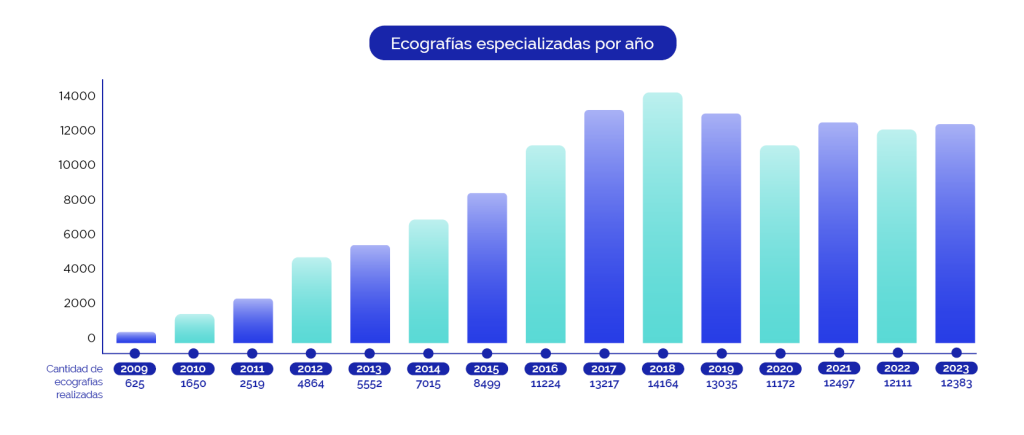 Además de las pacientes que atienden sus embarazos en el Hospital Austral por cuestiones de cercanía geográfica, la Unidad de Medicina Fetal recibe todos los años un número creciente de pacientes con patología materno-fetal para diagnóstico y tratamiento especializado de alta complejidad. Cada semana recibimos entre 3 y 5 derivaciones de todo el país.