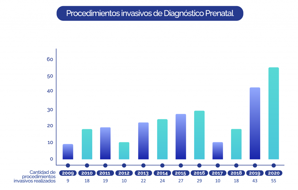 Los procedimientos invasivos prenatales permiten estudiar la presencia de enfermedades genéticas fetales, y en base a sus resultados proveer a los padres de información precisa sobre pronóstico perinatal y riesgo de recurrencia. Nuestra Unidad ofrece todo el espectro de estudios genéticos prenatales, desde citogenética (cariotipo) hasta estudios moleculares avanzados como microarray y secuenciación exómica prenatal.