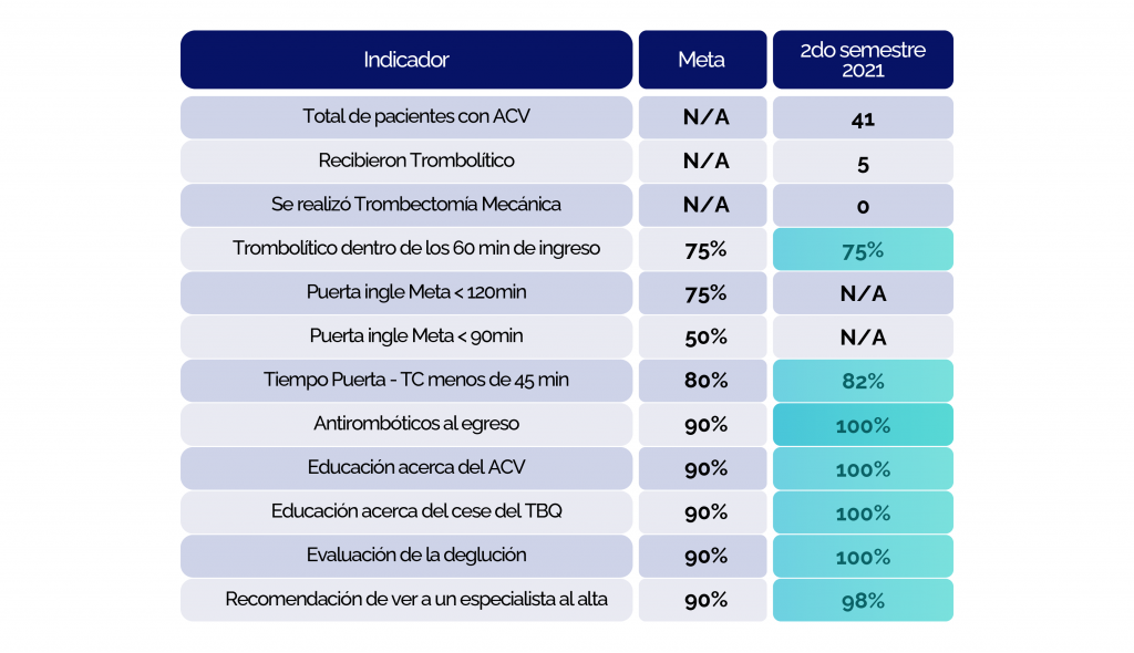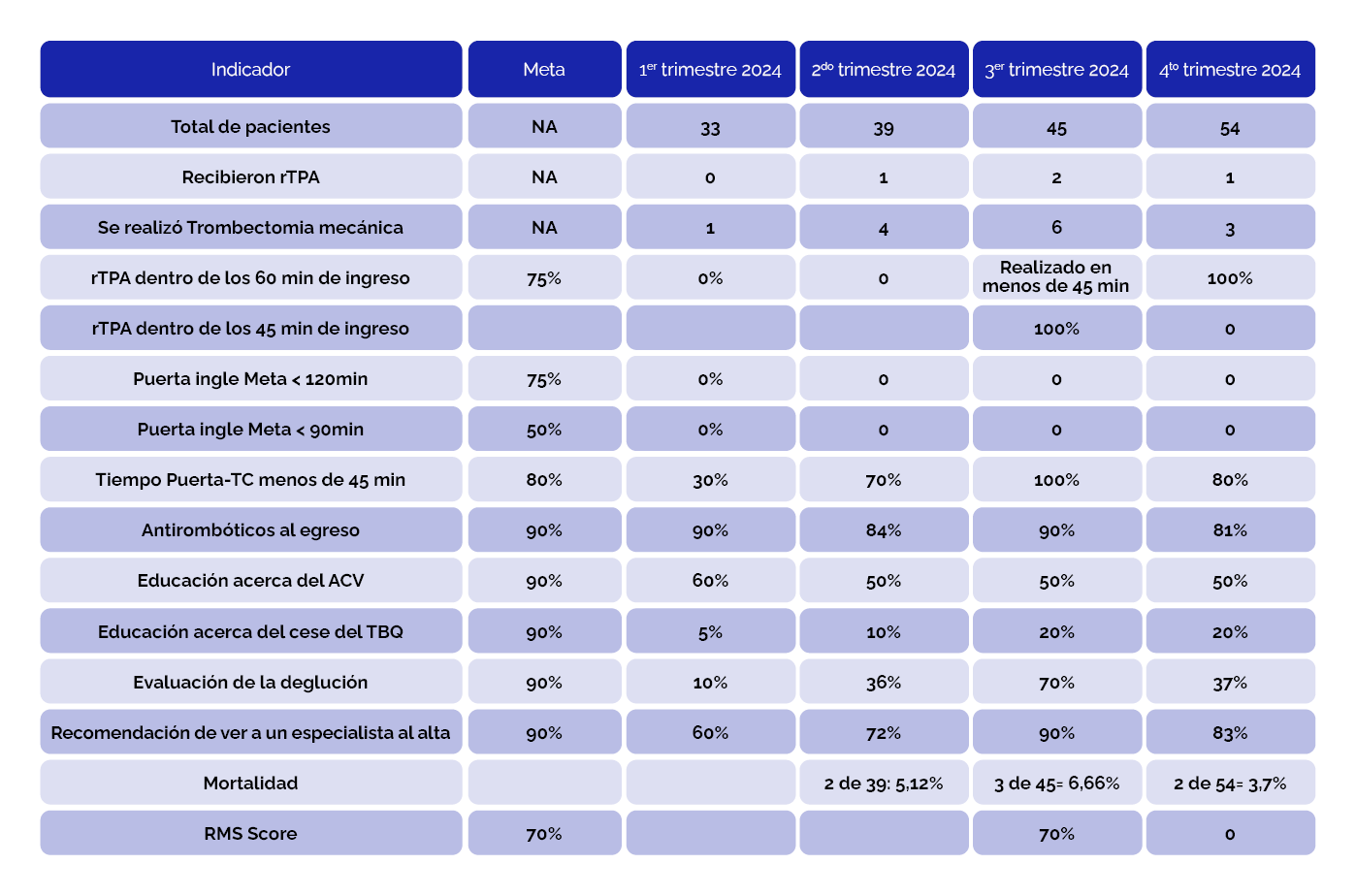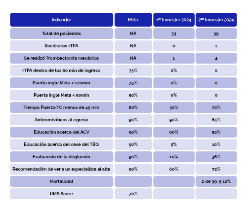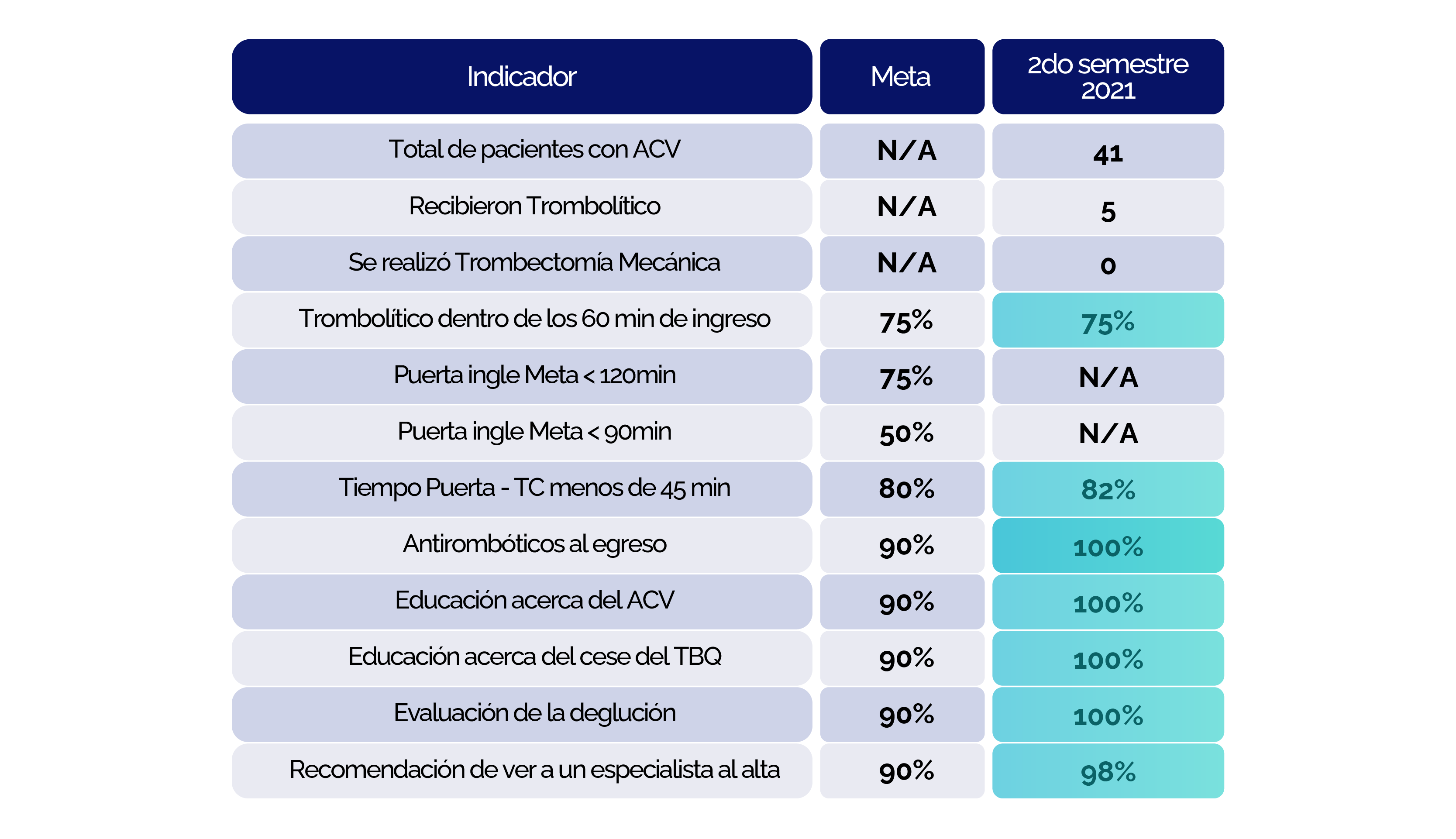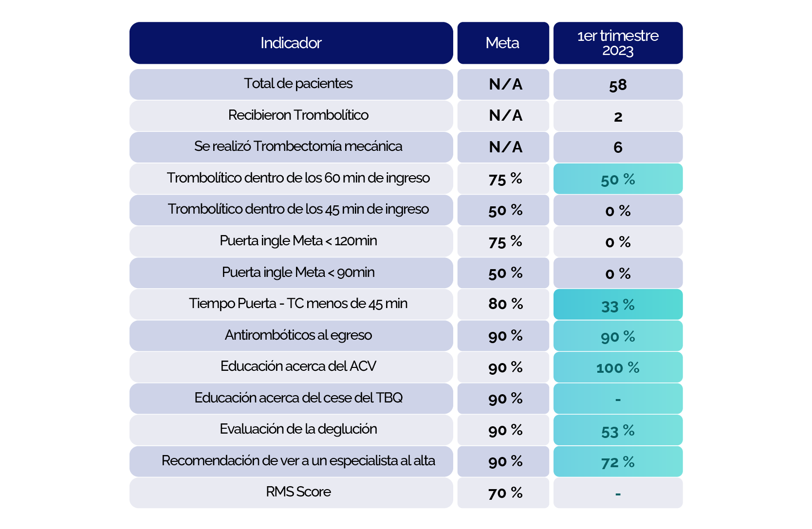 - Educación acerca del ACV: mide el % de pacientes que recibe información acerca de la patología.