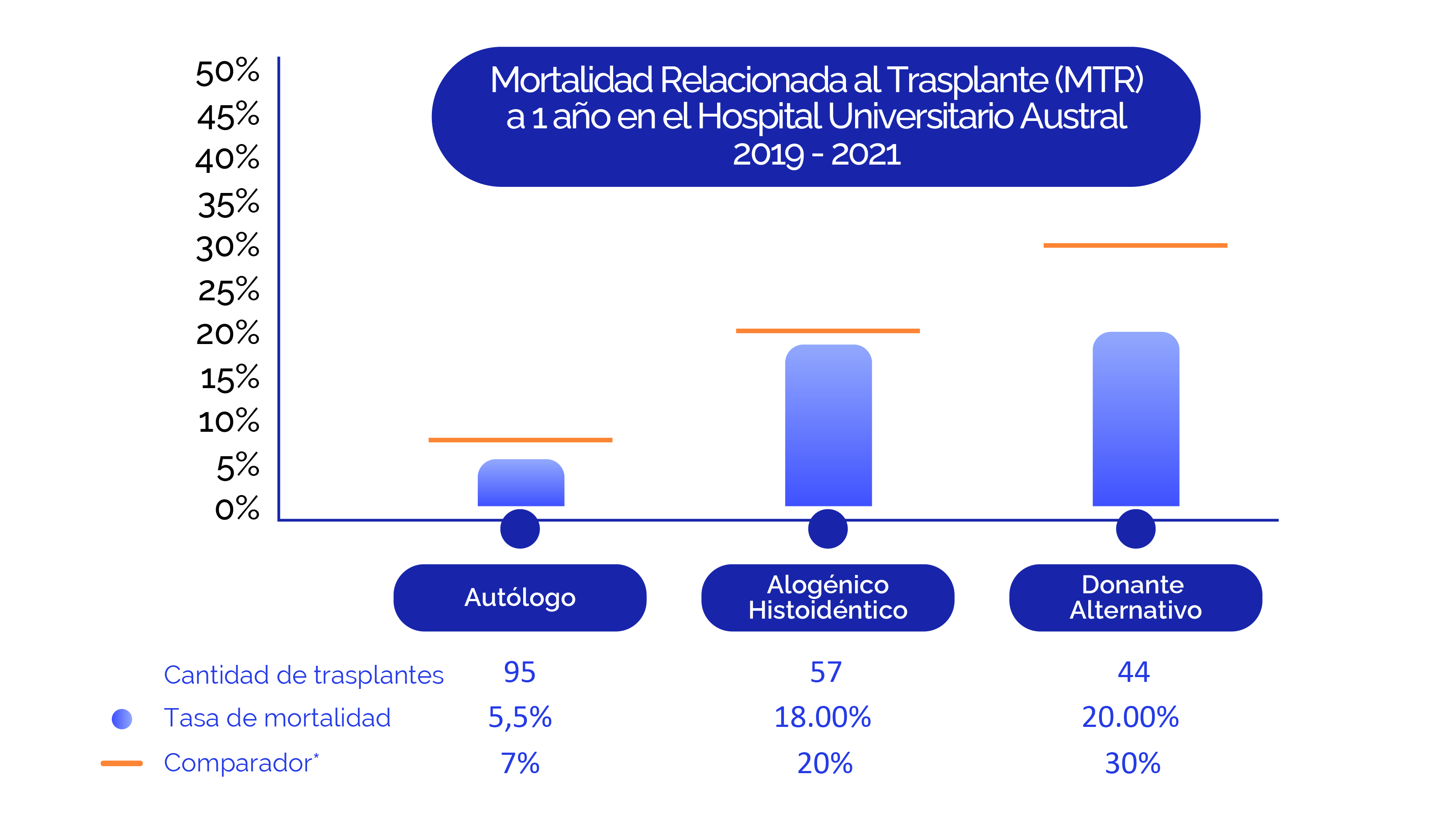 El trasplante hematopoyético es un procedimiento complejo, de alto riesgo. El indicador que muestra con mayor fidelidad la calidad de cuidado de los pacientes, es la mortalidad relacionada al trasplante. Este indicador varía según el tipo de trasplante: