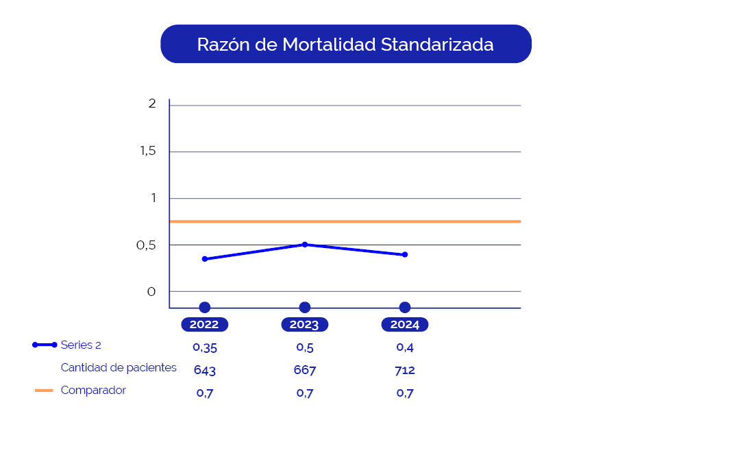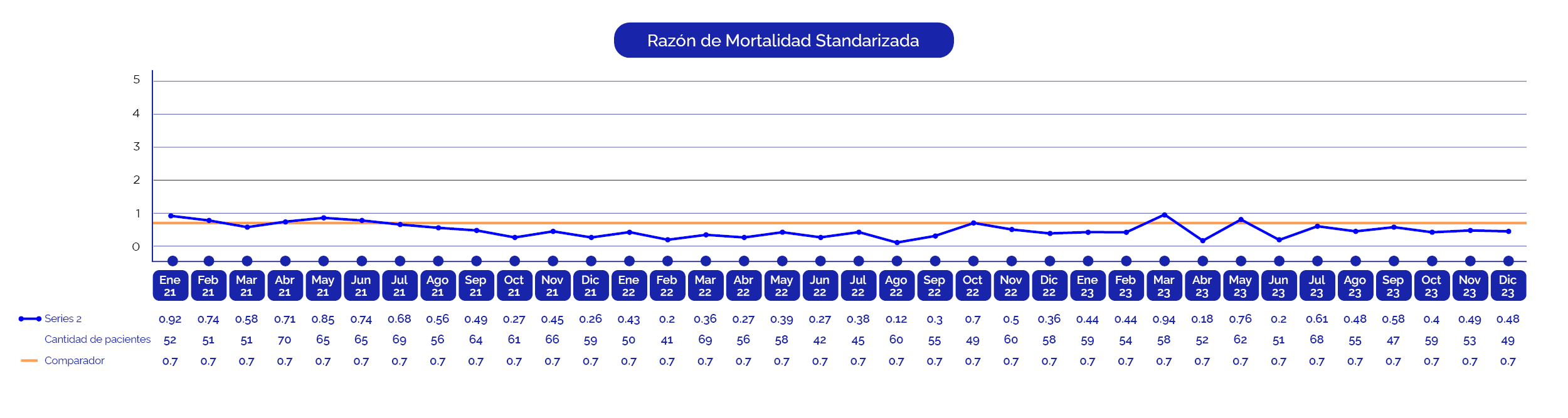 Para evaluar la performance en cuanto a mortalidad en áreas de Cuidados Intensivos nuestra unidad utiliza un indicador denominado tasa estandarizada de mortalidad (SMR) que compara la mortalidad real con la mortalidad esperada.
