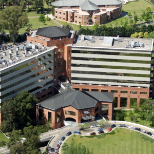 En Pilar, provincia de Buenos Aires, sobre la avenida Juan Domingo Perón, la destacada arquitectura del Hospital Universitario Austral se recorta entre un paisaje de árboles frondosos y naturaleza en estado puro.