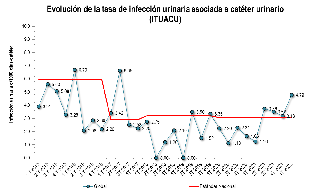 El cumplimiento con las medidas preventivas antes enunciadas ha permitido que la tasa de Infecciones Asociadas a Catéteres Urinarios se encuentre dentro de los estándares internacionales.